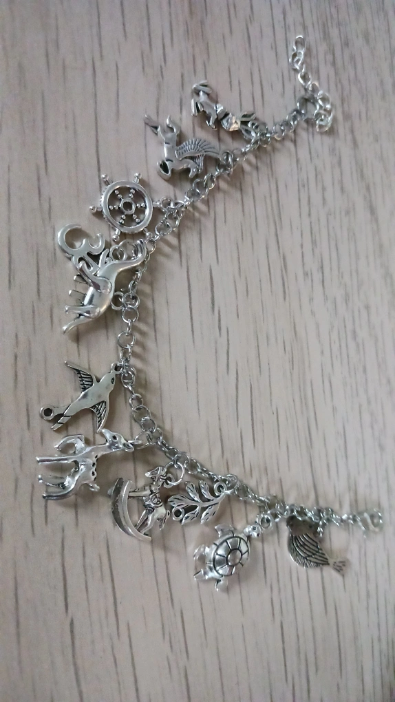 Selling a cute silver charm bracelet! It features a variety of charms including animals, a ship's wheel, and other fun designs. It's in great condition and would make a lovely addition to any jewelry collection
