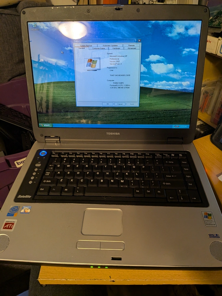 Working, fresh install of Windows XP. Battery holds a charge, not sure for how long but seems to be a while.