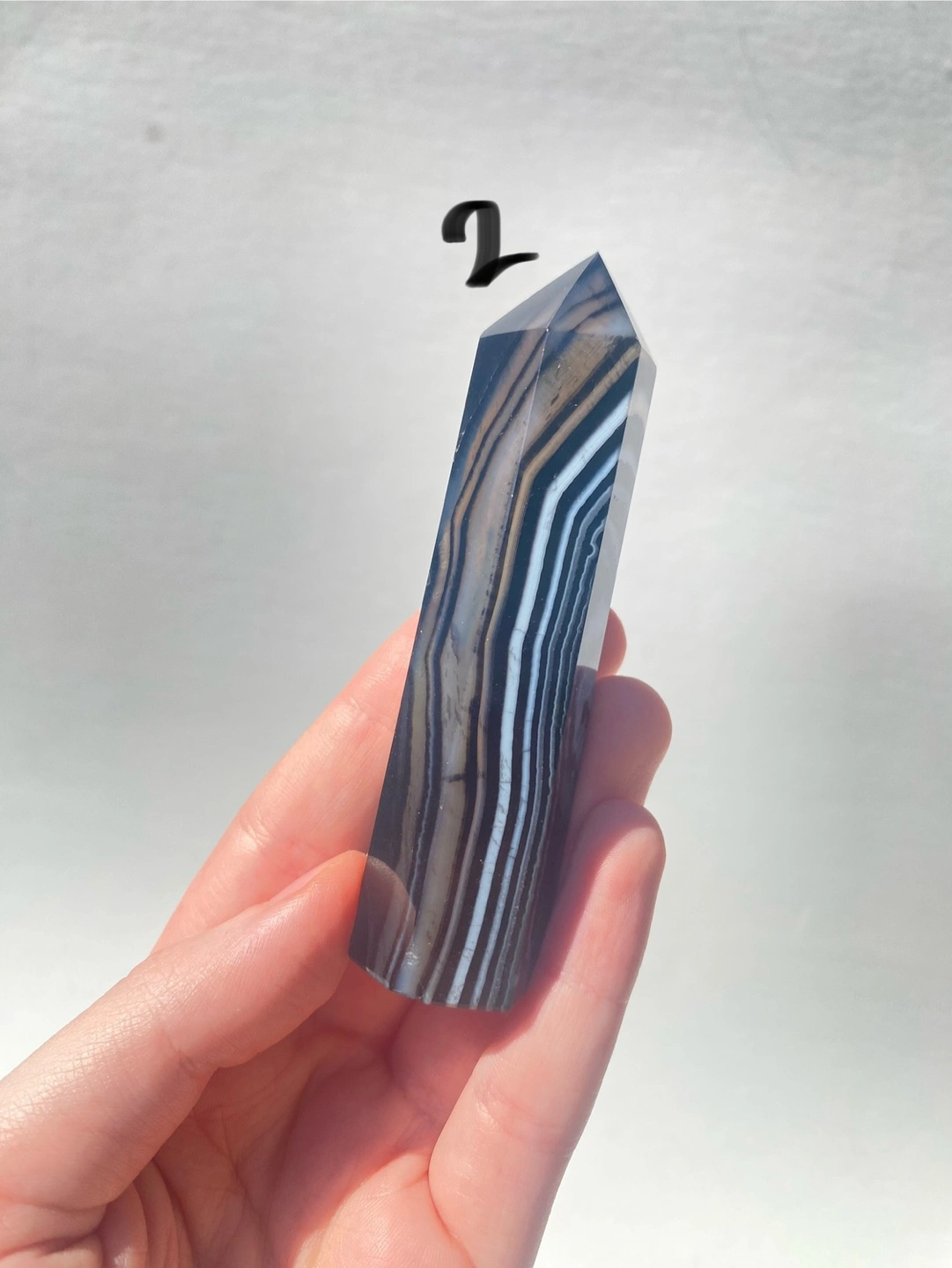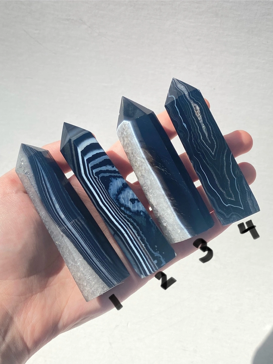 $27 each! Gorgeous banding and natural Druzy on some Range from 3.35”- 3.57” tall and 73-83grams Balancing your physical, mental, and spiritual energy during meditation.