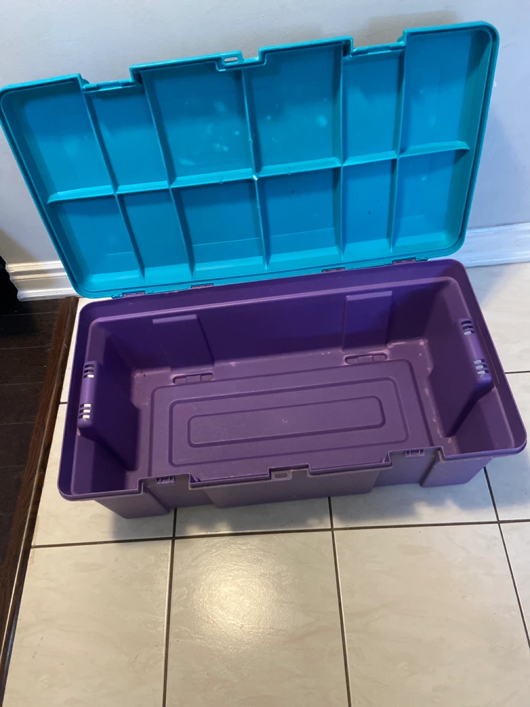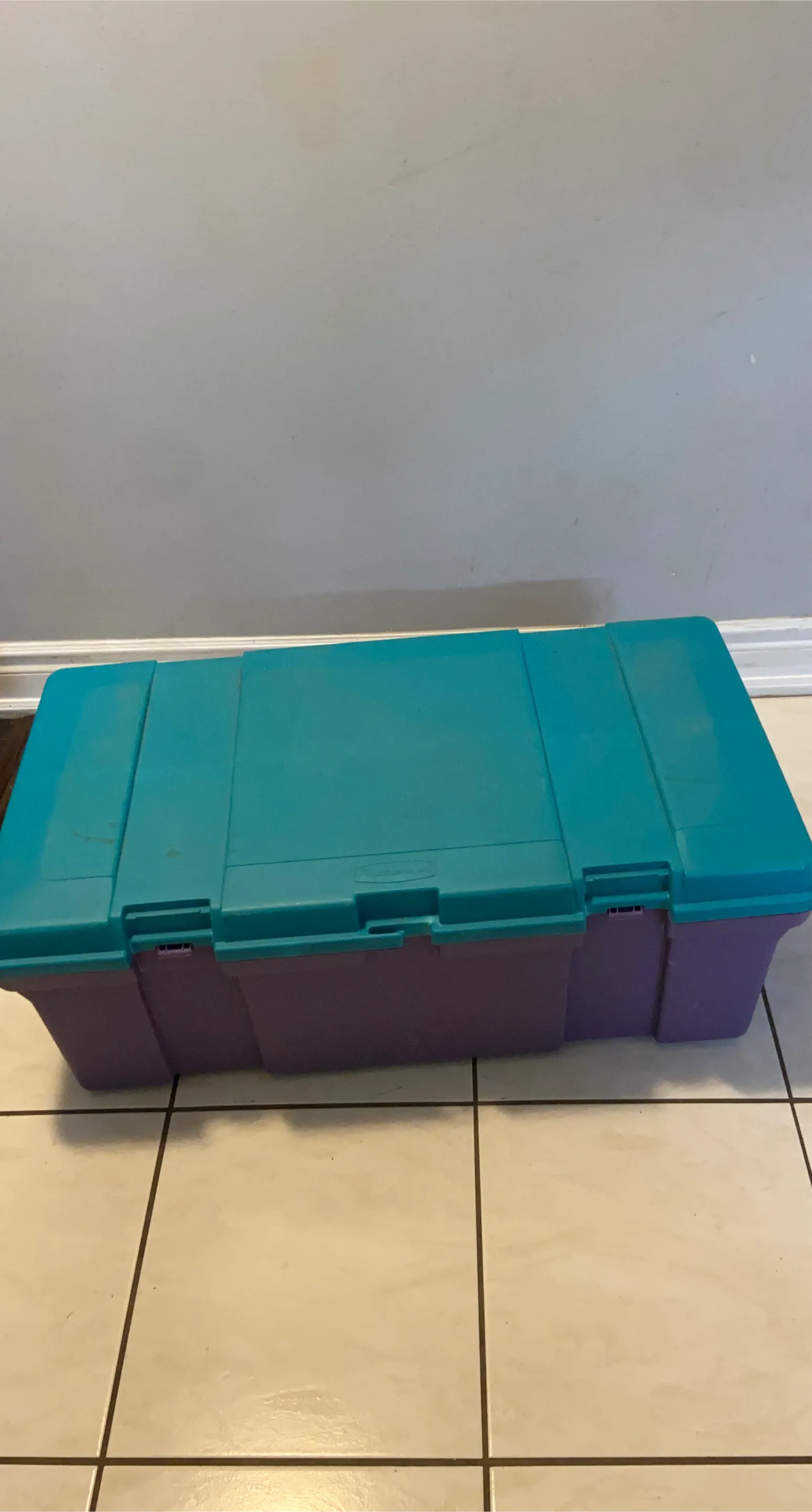 Selling a Rubbermaid storage box in a teal and purple colour combination! It's in good condition and ready to help you organize your space