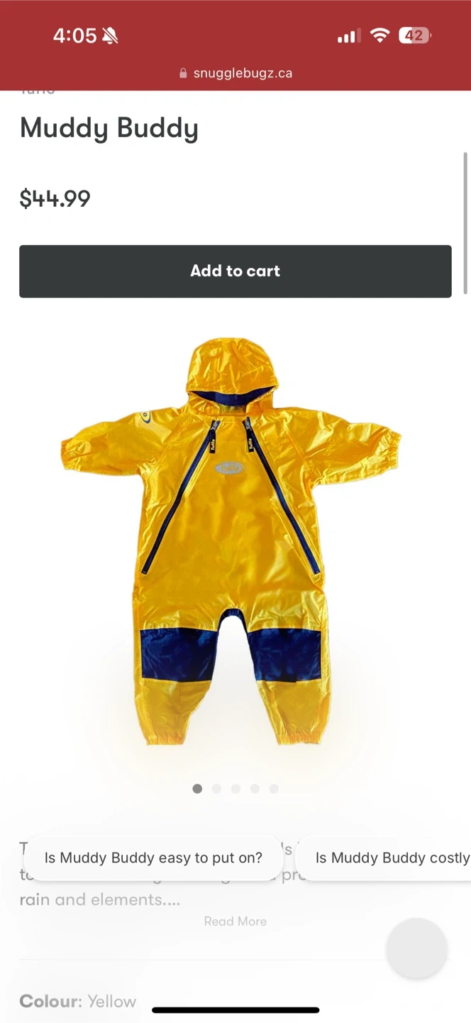 1. Yellow Tuffo rain suite. Size 18 months. Retails for $40 selling for $20. Never used.