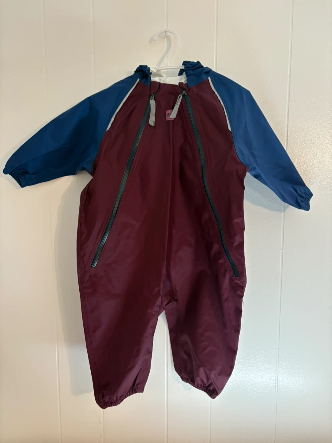 2. Burgundy/blue MEC rain suite. Size 12 months. Retails $80 selling for $40. Never used.