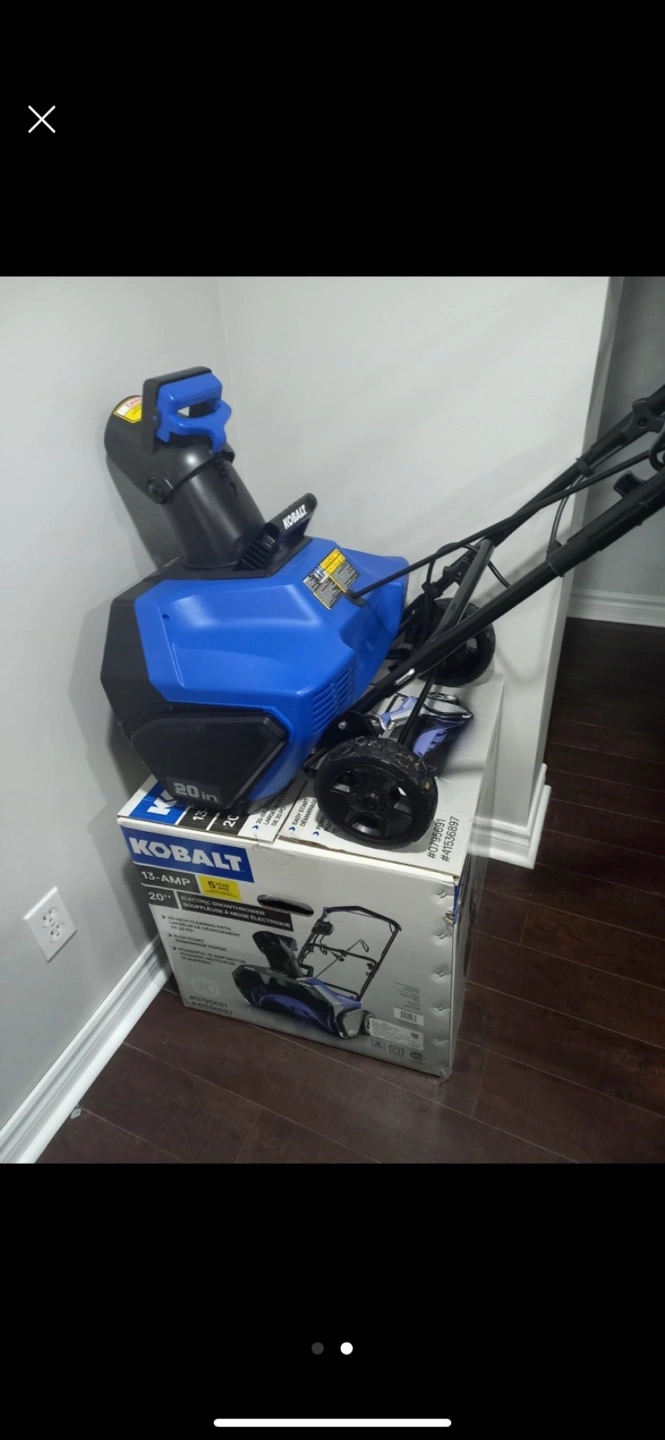 Selling a Kobalt 20-in. 13-Amp Electric Snow Blower. It's in good condition and ready to tackle the snow. Perfect for clearing driveways and walkways this winter season