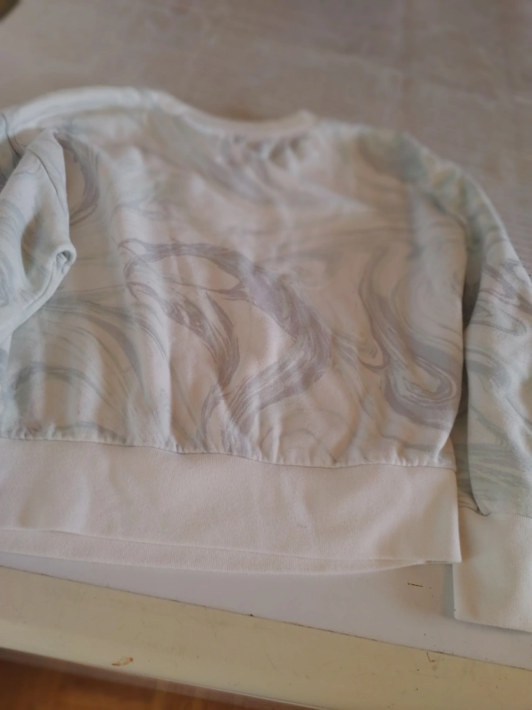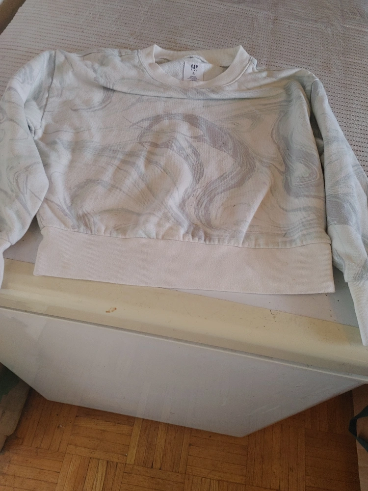 Selling a cute GAP Kids sweatshirt in size M (8)! It features a stylish marble print. Made with: - 60% cotton - 33% recycled polyester - 7% polyester