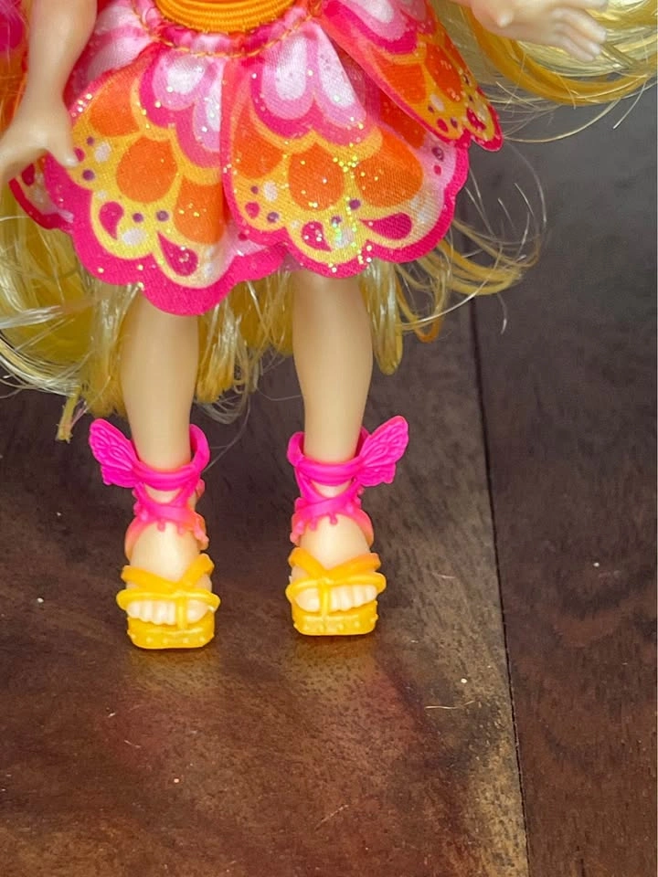 37Comes complete with skirt and sandals. Original hairstyle. Molded on wings, beautiful face paint with butterfly gem on forehead. Stands 6.5” tall, moveable head, legs, shoulders and elbows. Excellent condition, great for children or collectors. **Have Faye the Fairy for sale as well** Pick up: Etobicoke (Martingrove/Silverstone)