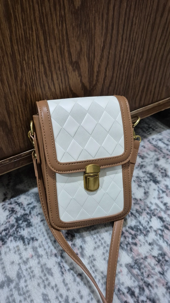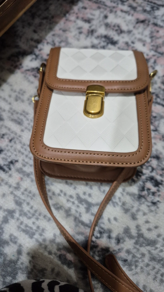 18Selling a cute crossbody bag in brown and white! It's in great condition and perfect for carrying your essentials. The bag features a quilted design on the front and a secure clasp closure. It's a stylish and practical accessory for any outfit