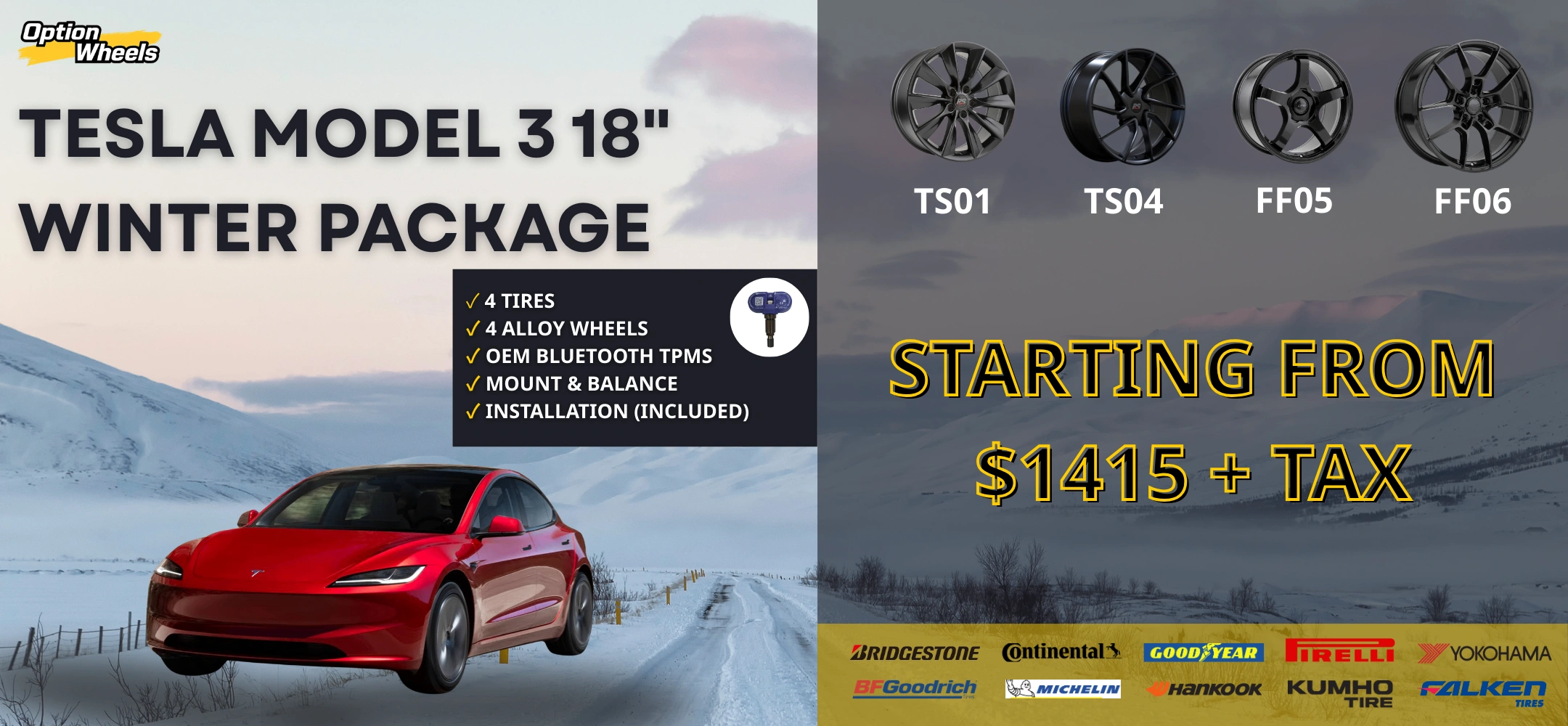 โ„๏ธ Full winter wheel & tire sets for Tesla Model 3. ๐Ÿ’ฐ Price Range: $1415 โ€“ $2385 + Tax โœ”๏ธ 4 Wheels + 4 Winter Tires โ€“ Balanced & Mounted โœ”๏ธ FREE In-Shop Installation (Oakville) โœ”๏ธ Mobile Service Available (GTA) โ€“ $100 Highlights: Wheels: RS TS01, RS TS04, OPE FF05, OPE FF06 Tires: Michelin X-ICE Snow, Pirelli Sottozero, Hankook, Wanli ๐Ÿ“ Option Wheels โ€“ Oakville, ON ๐Ÿ“ฒ DM @optionwheels_ for Tesla Model 3 winter packages today!
