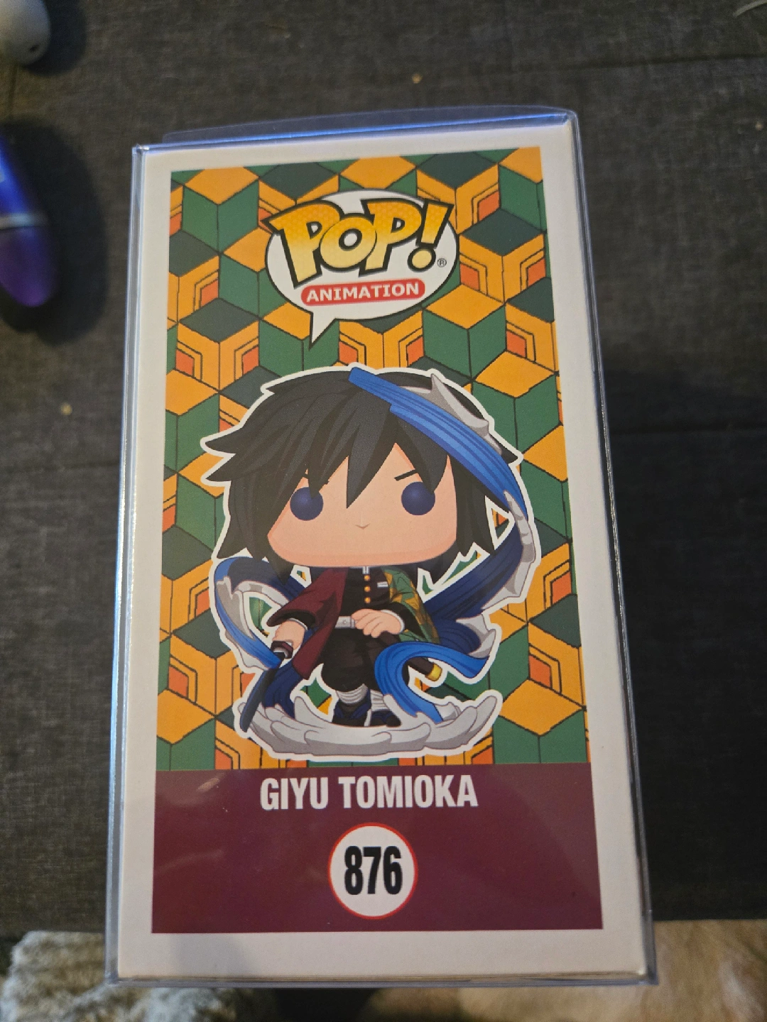 Selling a Funko Pop! Animation figure of Giyu Tomioka from Demon Slayer. This is figure #876 special edition! Great for any Demon Slayer fan or Funko collector. near mint box in protector. see photo for condition
