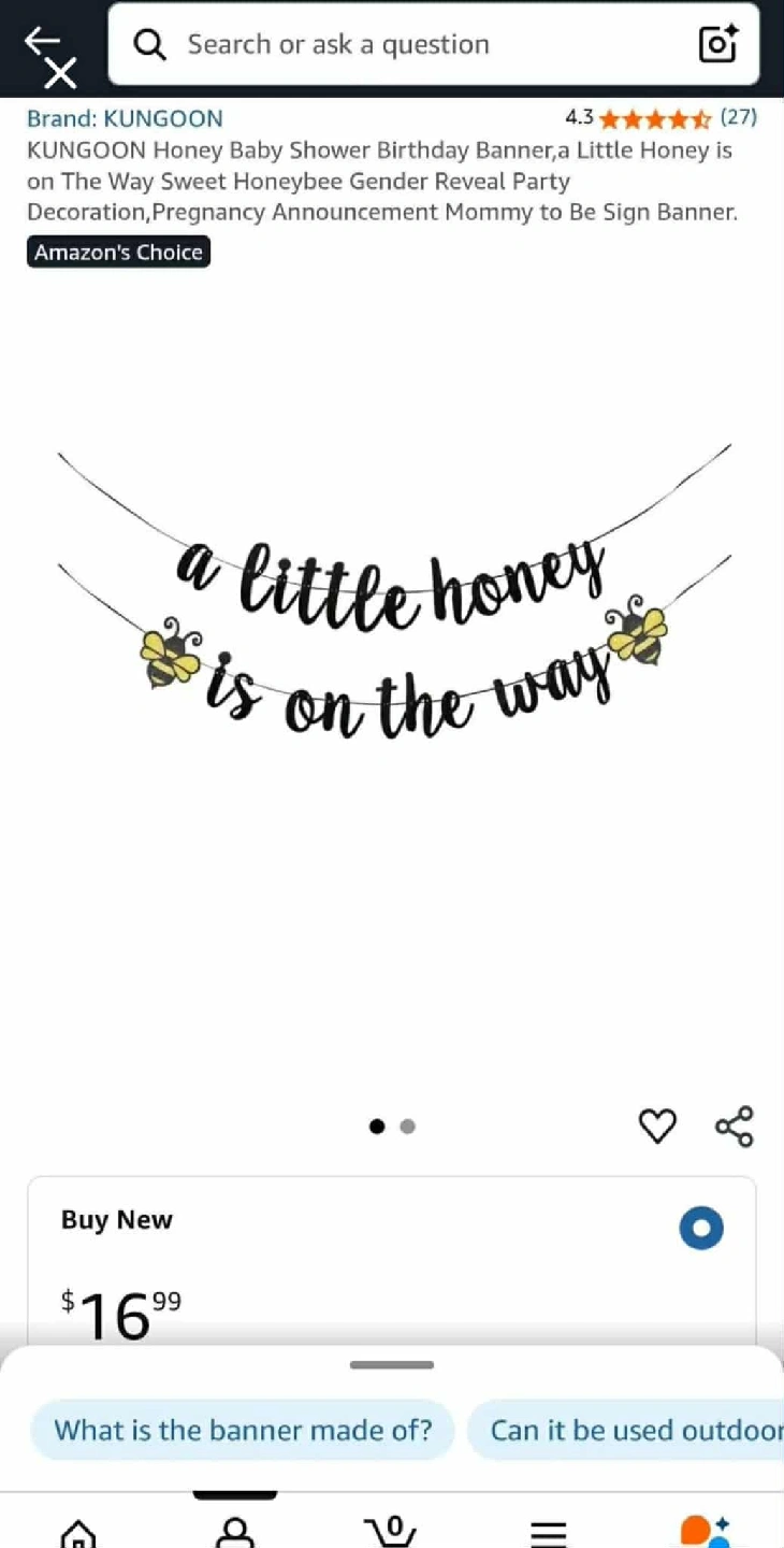 KUNGOON Honey Baby Shower Birthday Banner, perfect for a little honey on the way sweet honeybee gender reveal party decoration, or pregnancy announcement mommy to be sign banner