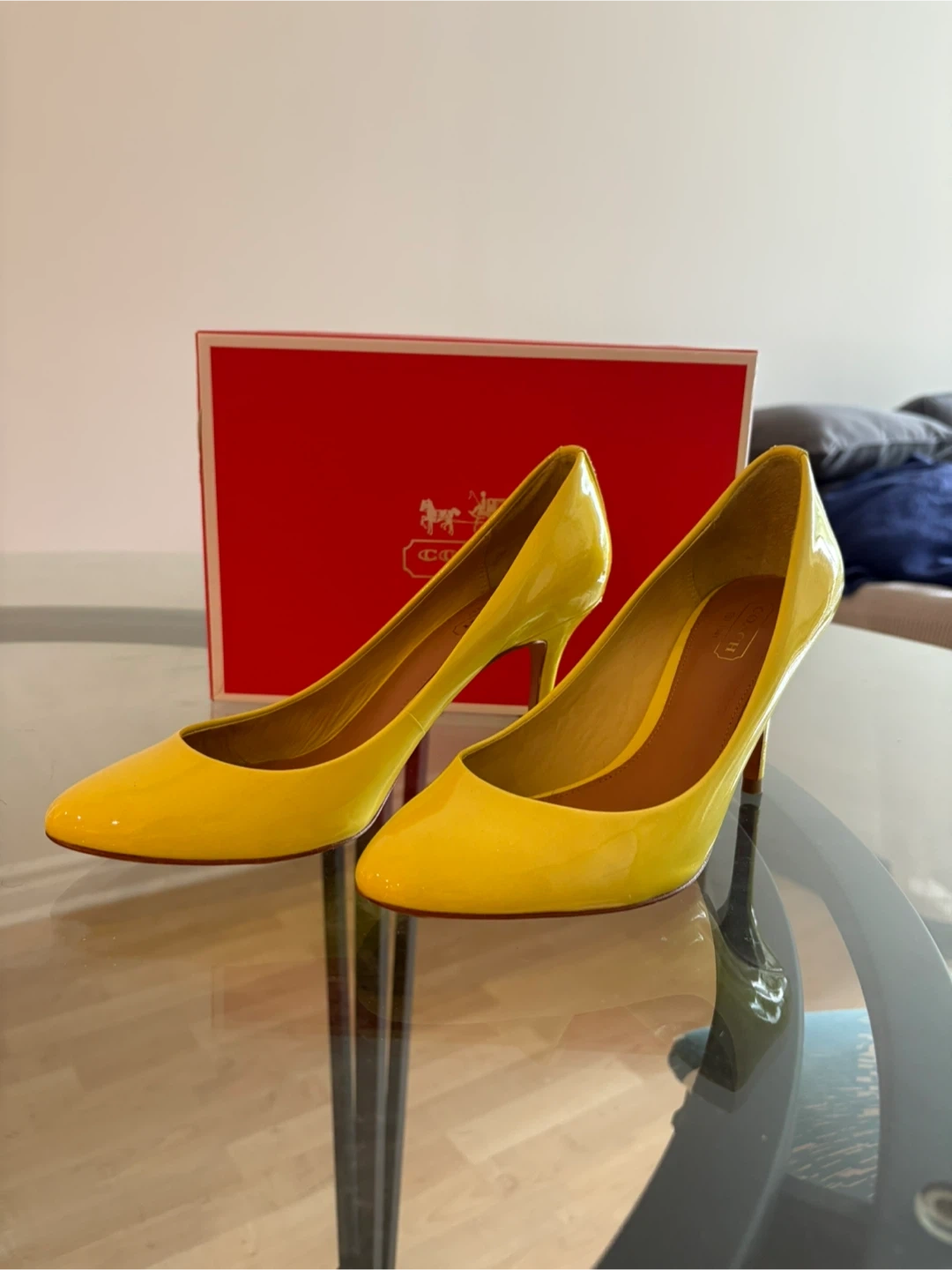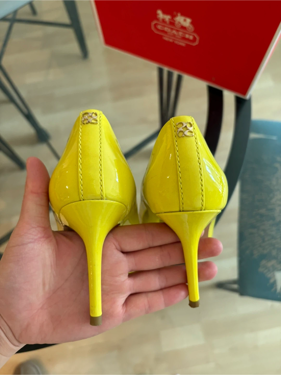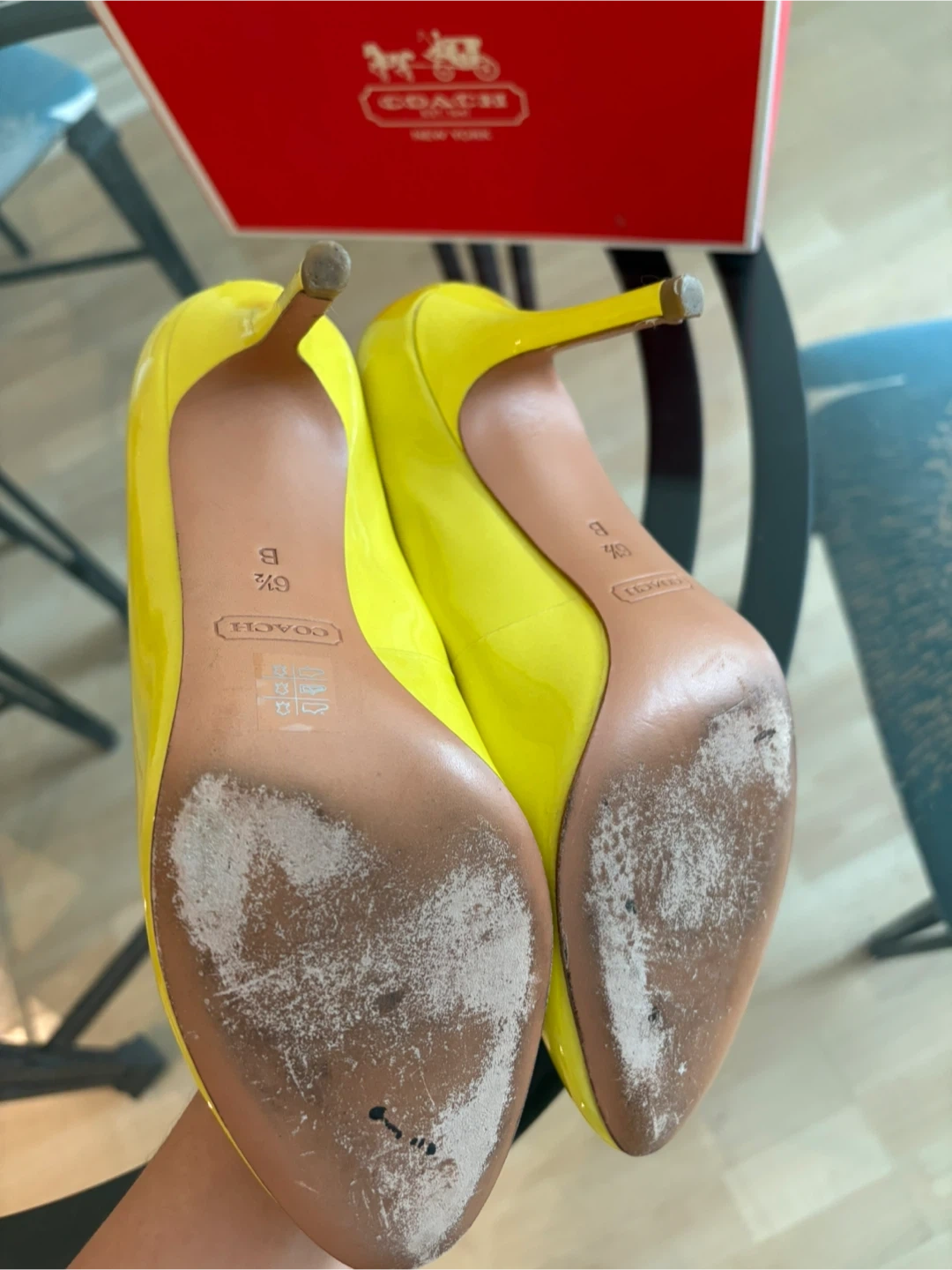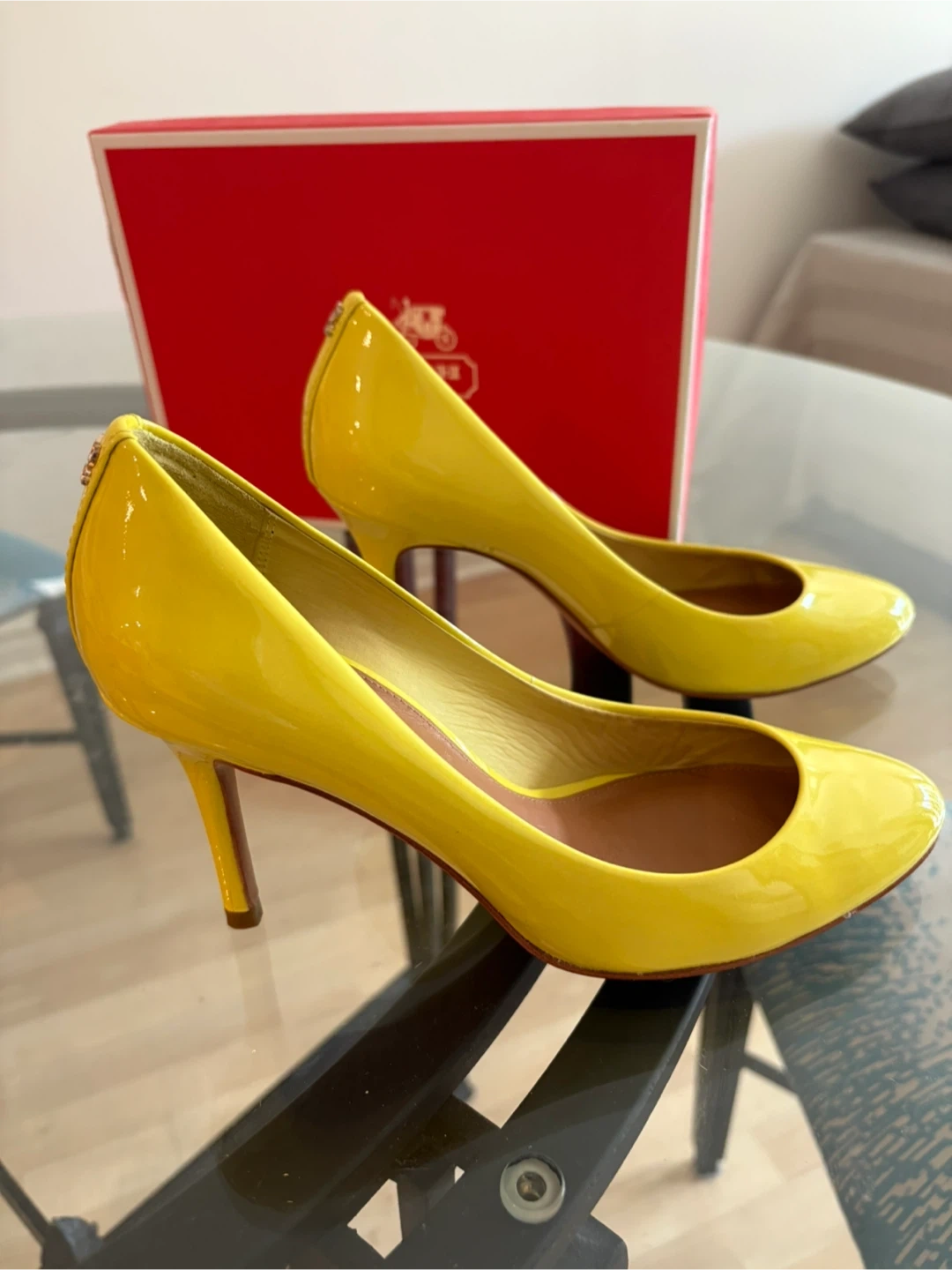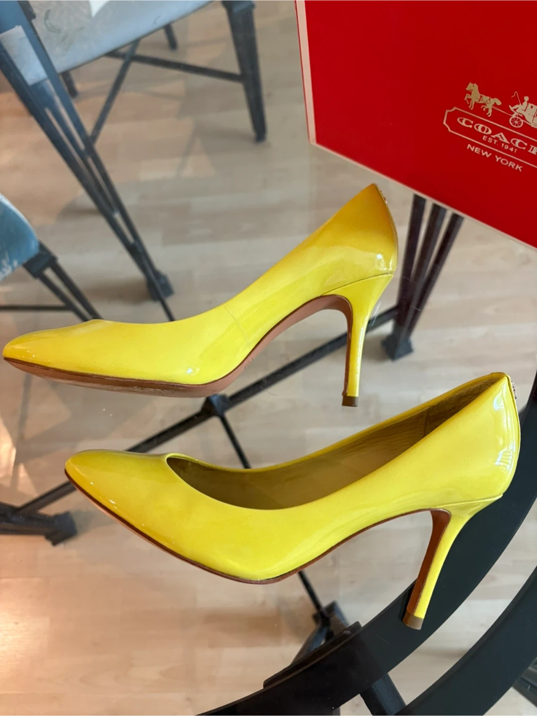 Authentic Coach “Bright Citrine” Nala Patent Heels - Size 6.5