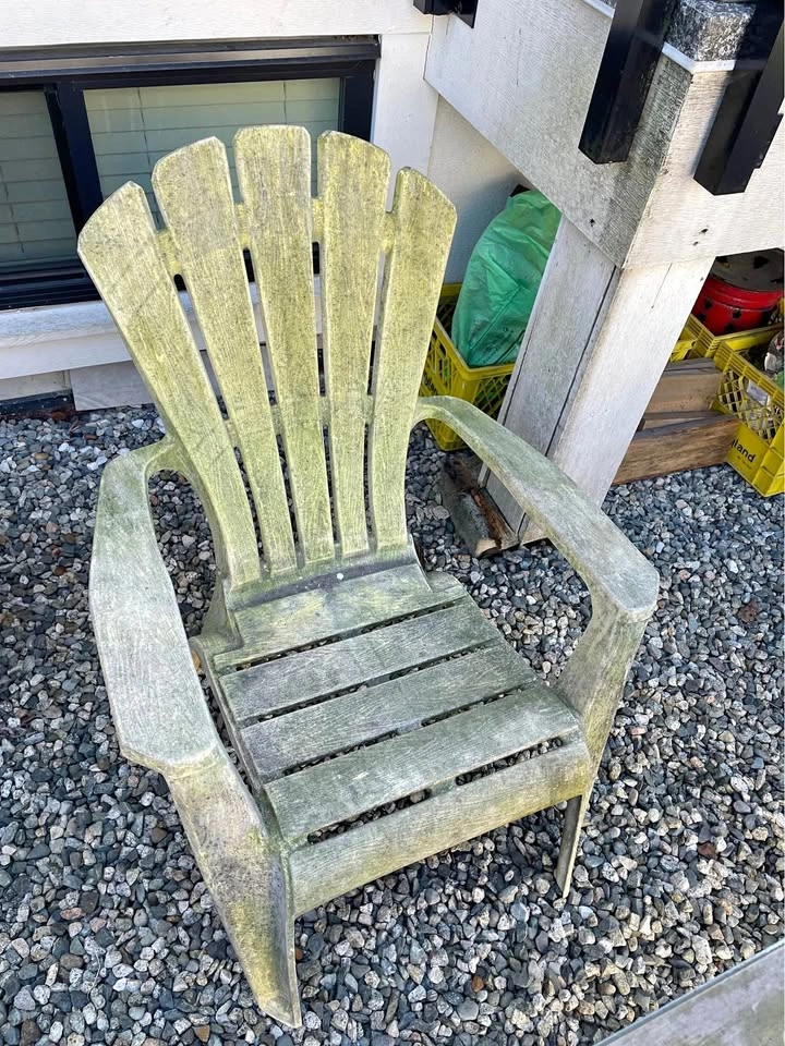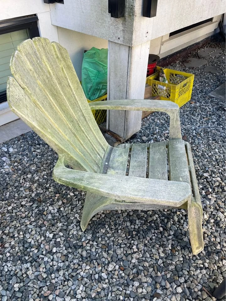 70Sturdy outdoor plastic chair, weathered but still usable. Great for the garden, patio, or as a project piece if you want to clean it up. Condition: Used, shows signs of wear and discoloration from being outdoors. Price: Free Pickup: Near Notre Dame Secondary school in Vancouver