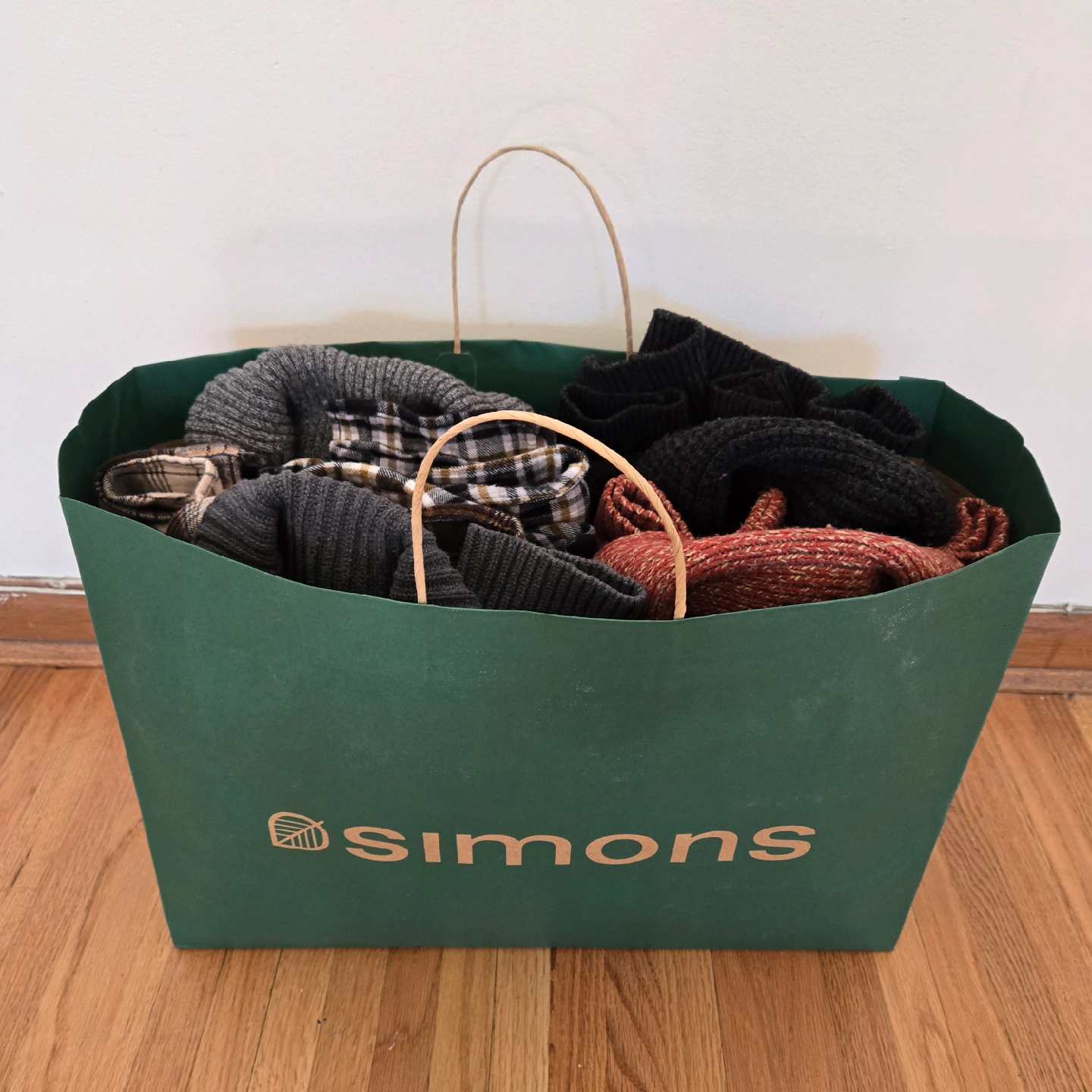 Selling a bundle of 4 sweaters and 2 warm plaid shirts. Great for anyone wanting extra warm layers without spending much.
