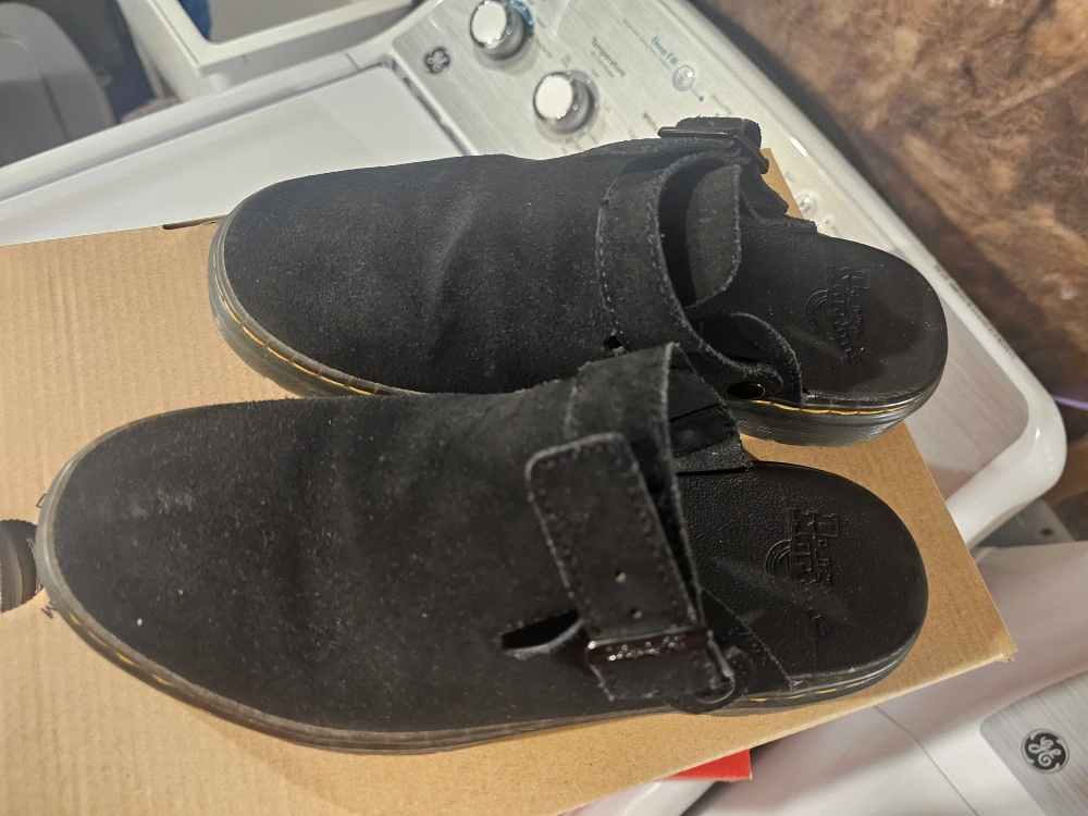 Selling a pair of Dr. Martens Carlson mules in black suede! They're a size 9 and come with the original box. These stylish and comfy mules retail for $145 + tax