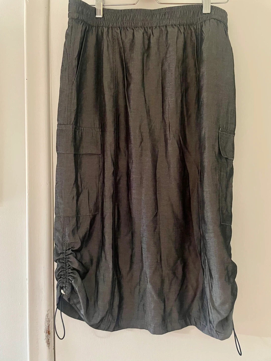 Selling a b.young skirt in a stylish grey colour! It's a size M and features a unique design with adjustable drawstrings at the hem. Perfect for adding a touch of flair to your wardrobe!