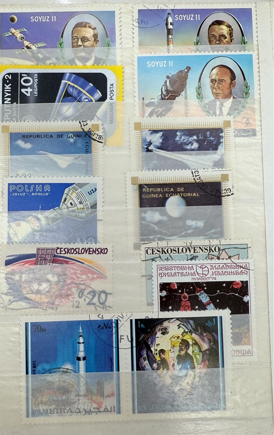 Selling a collection of vintage stamps featuring space exploration themes! The stamps include images related to Soyuz 11, Apollo-Soyuz, and other space missions from countries like Poland, Czechoslovakia, and Guinea. A cool find for stamp collectors or space enthusiasts!