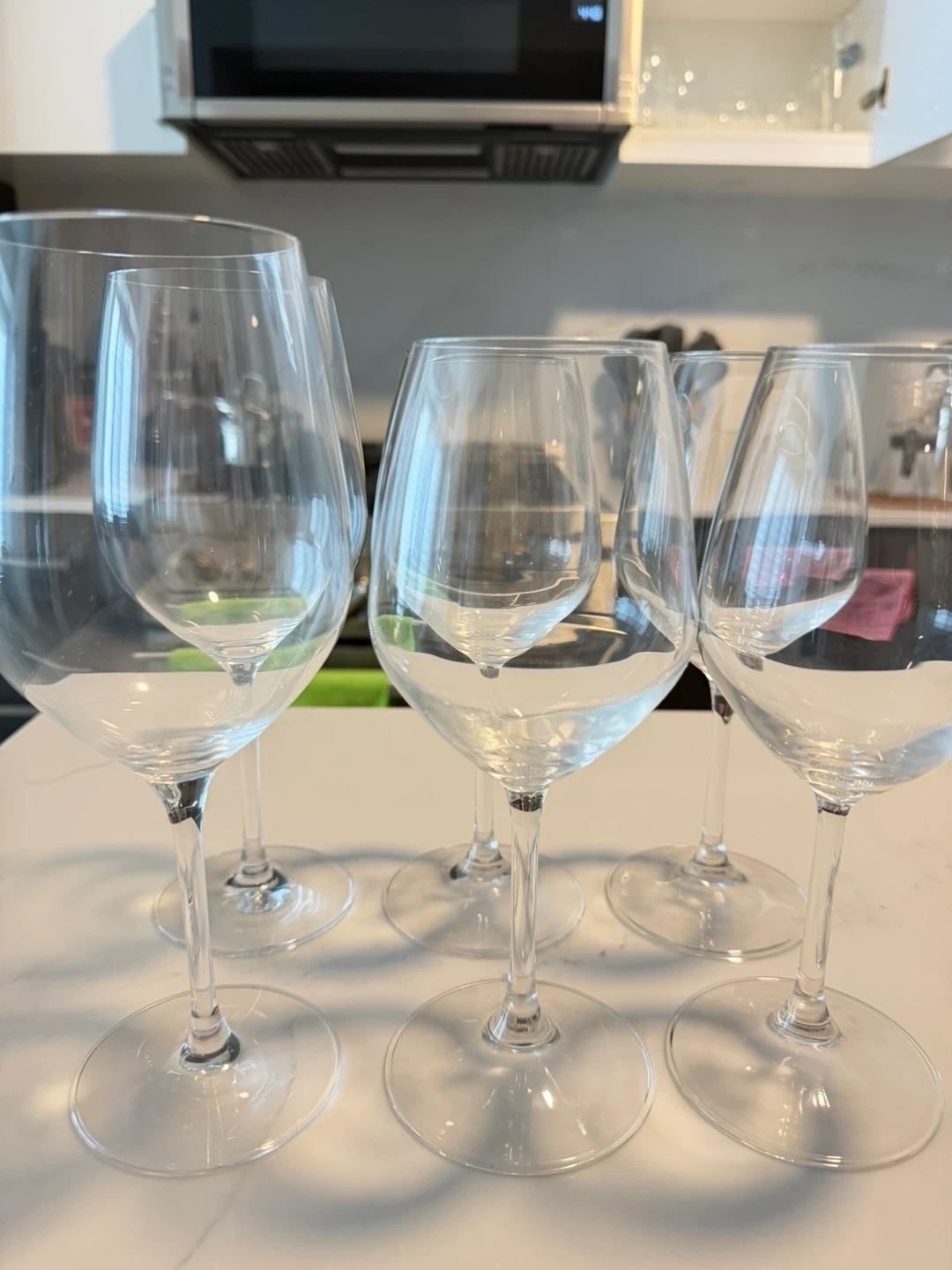 Selling a set of six wine glasses. They're in great shape and ready for your next dinner party or cozy night in! Perfect for any wine lover looking to expand their collection
