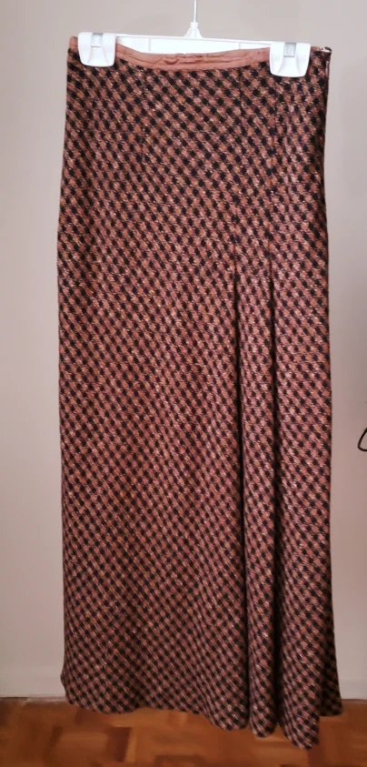 Selling a cute midi skirt with a brown and black checkered pattern. It's in great condition and measures about 87cm in length and 39cm across the waist. Perfect for late Autumn and early Winter.