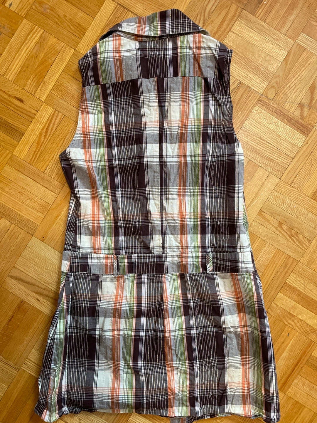 Cute plaid sleeveless dress from Grass Collection in size medium! It's made of 100% cotton and has a unique design with multiple pockets. Perfect for a casual day out or layering with other pieces. A bit wrinkled because it was in storage but other than that perfect condition.