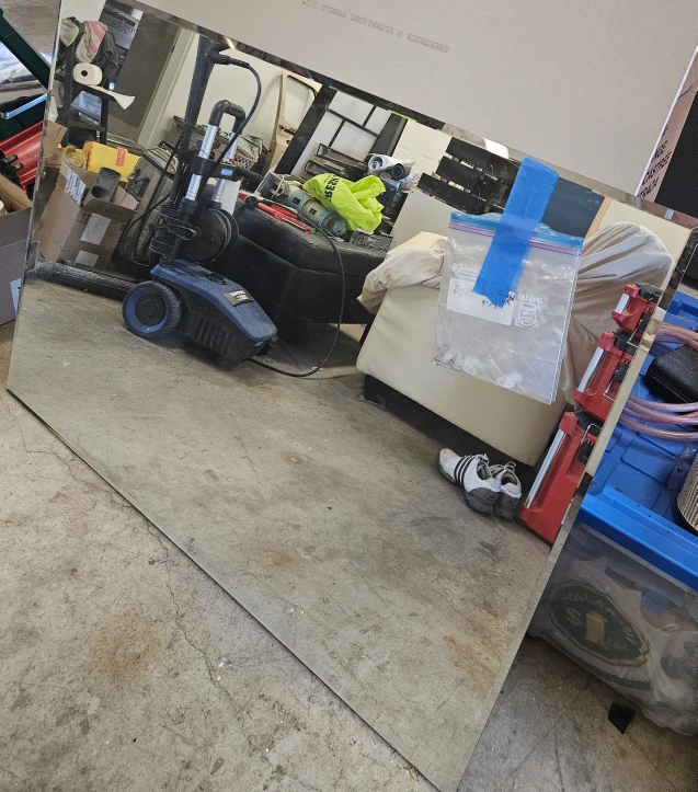 Selling a large mirror. With mounting hardware. It's in good condition and ready to brighten up your space! It's a great addition to any room.