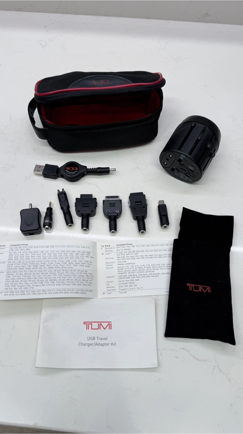 Selling a Tumi USB Travel Charger/Adapter Kit. It comes with various adapters and a carrying case. Great for international travel!