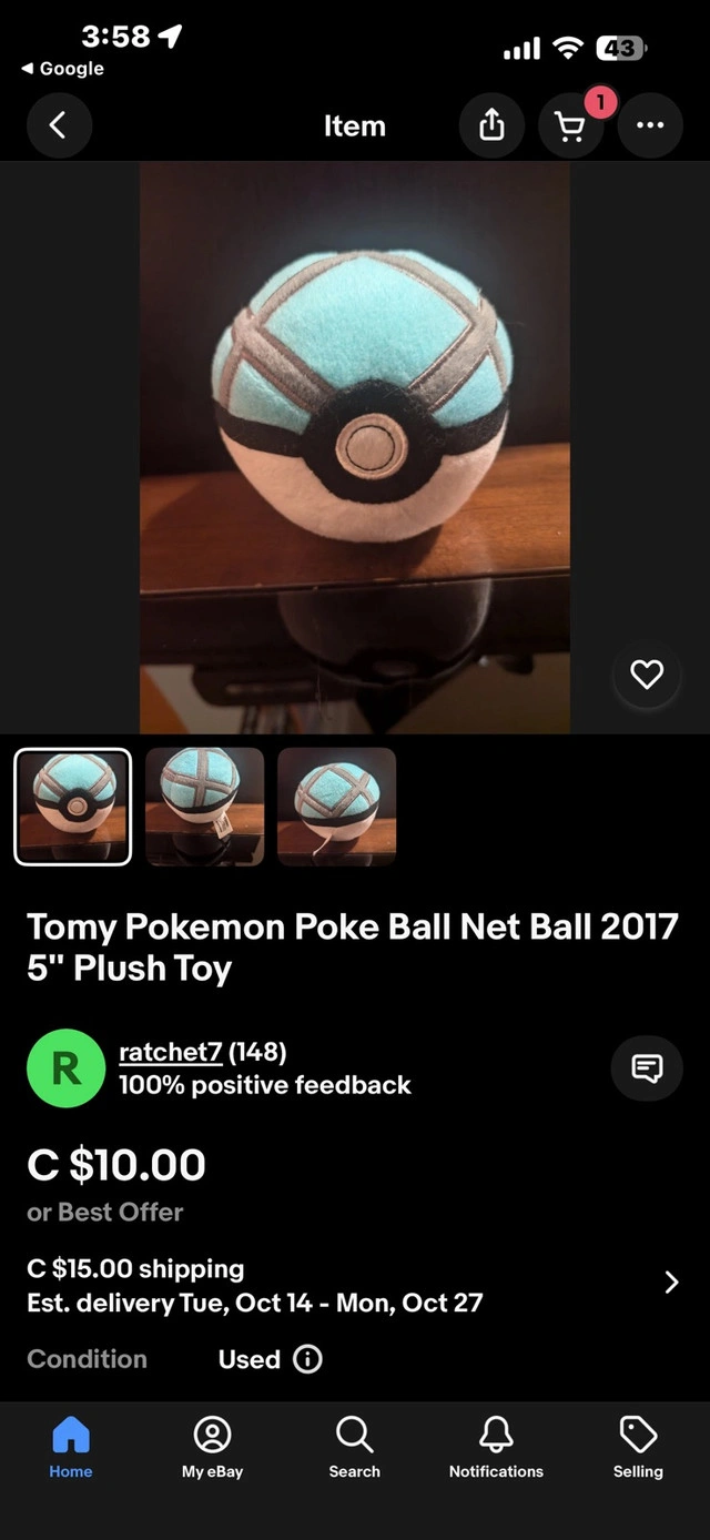 Dive into the world of Pokemon with this adorable Net Ball plush! This cuddly plush is in used condition and is perfect for collectors and Pokemon fans of all ages. I've done my best to ensure this Net Ball plush is in good shape for its next adventure. It is a delightful addition to any Pokemon collection and it's looking for a new home where it can bring joy and smiles. Key features: * Soft and huggable material * Authentic Net Ball design I've checked Kijiji and similar Pokemon plushies typically sell between $8 and $15. Given the quality and condition, I'm pricing this one at $10. If this ad is still up, then yes, it is still available. No need to ask!