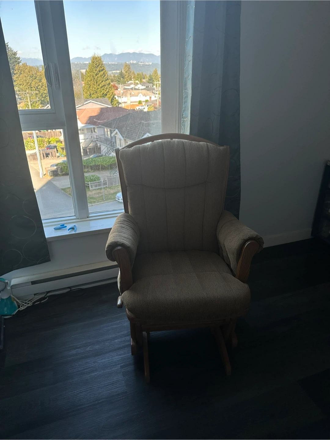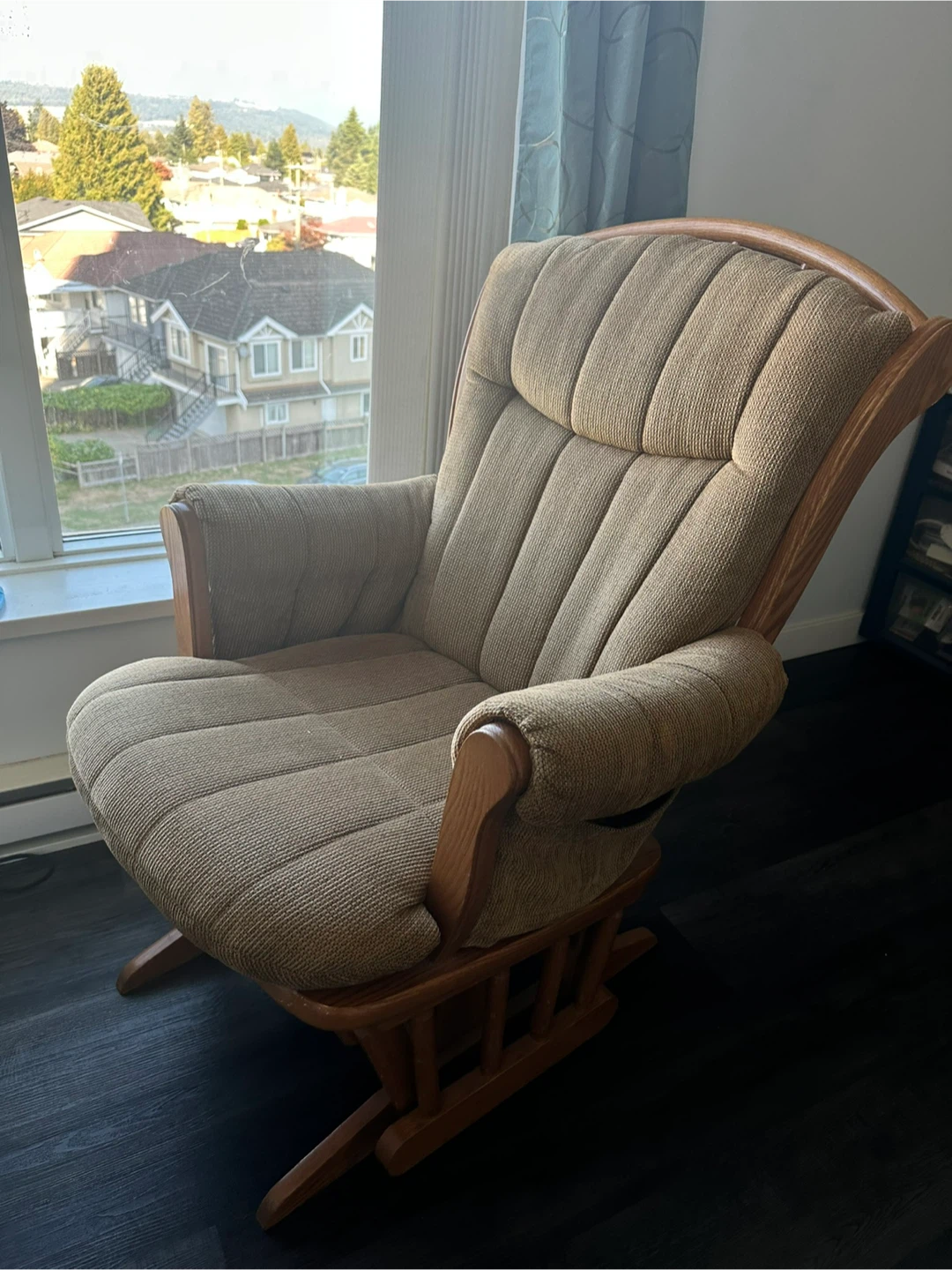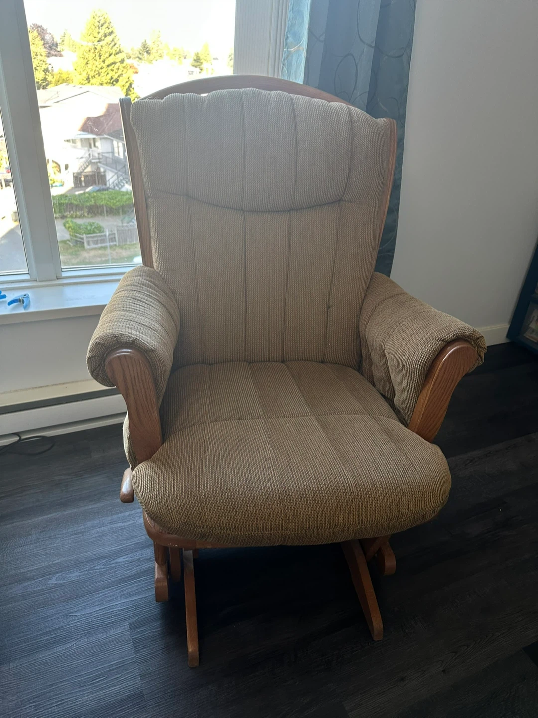 Selling a comfortable gliding rocking chair. It's in great shape and perfect for relaxing in any room of your home! The neutral beige colour will fit in with any decor