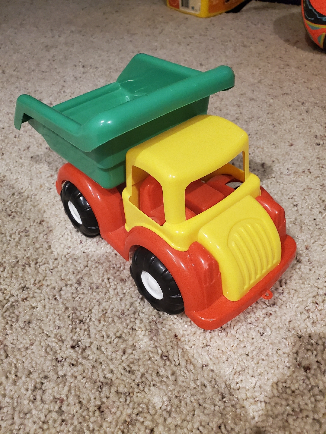 Here's a fun and colourful toy dump truck! It's in great shape and ready for a new home. Perfect for little ones who love trucks and construction.