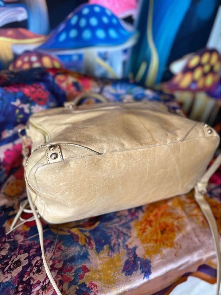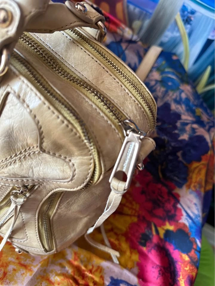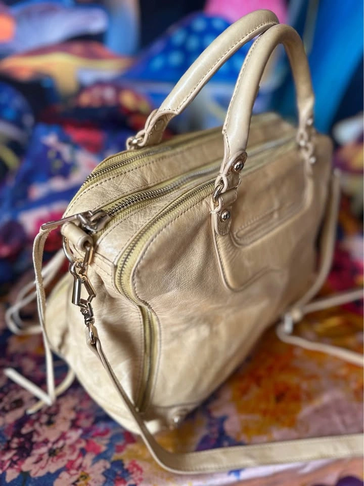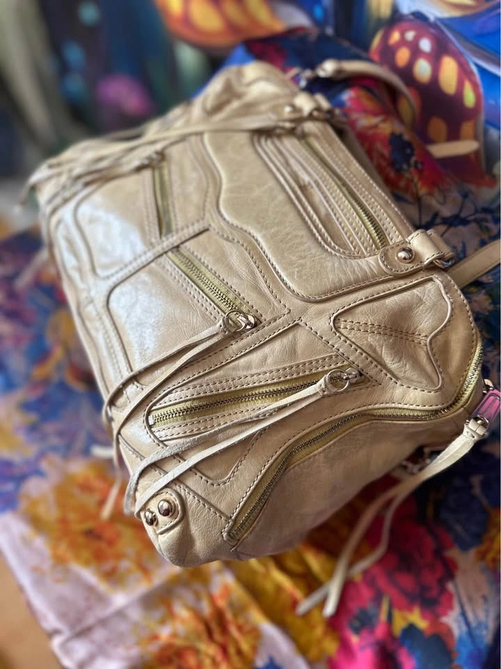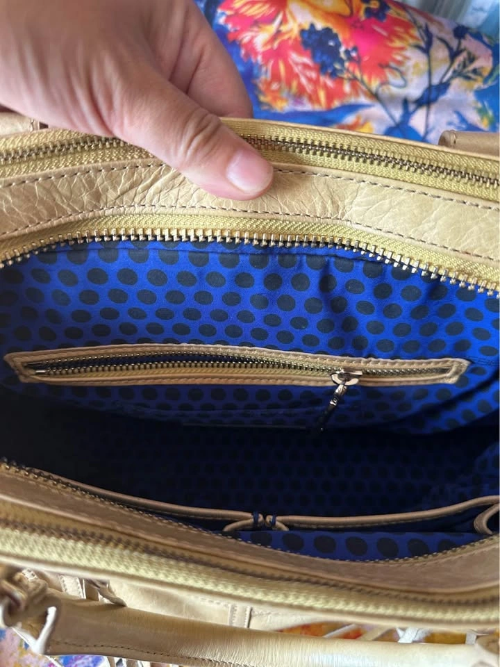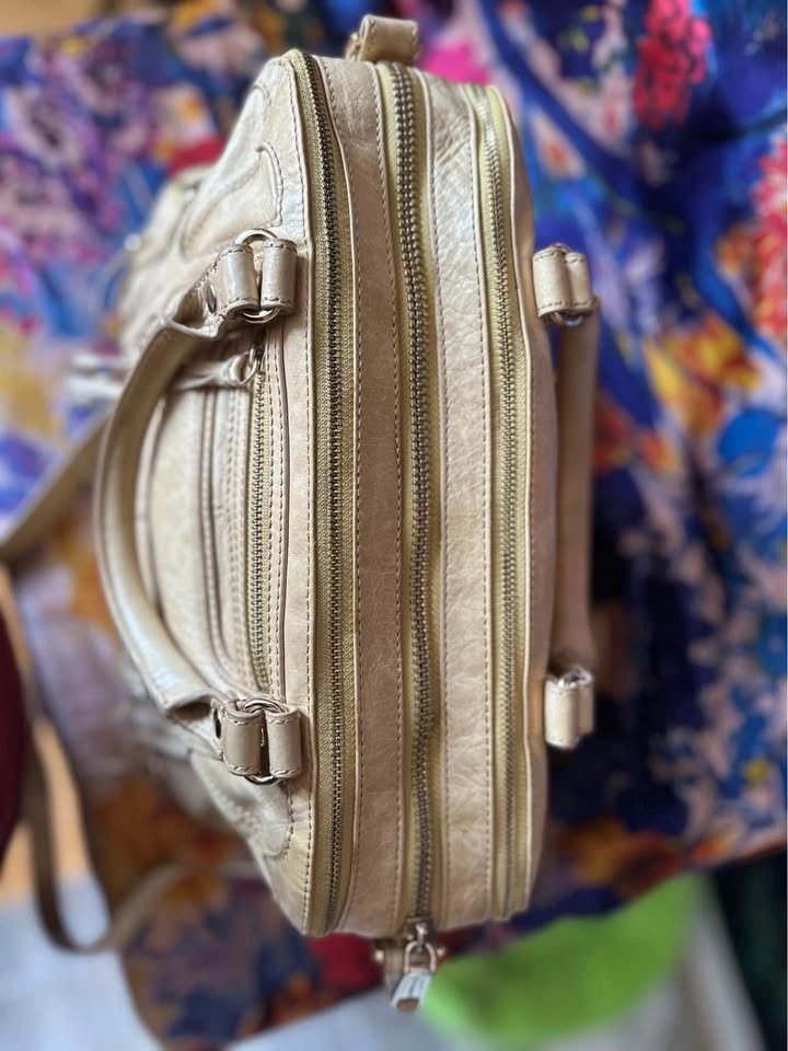 Pre-loved designer leather satchel tote in beige. Features multiple zippered pockets, braided handles, and signature tassel details. Spacious interior, perfect for everyday use or work. Condition: Gently used, well maintained. Some natural leather softness (see photos). Color: Beige / Light Tan Material: Genuine Leather A timeless piece with both style and practicality.