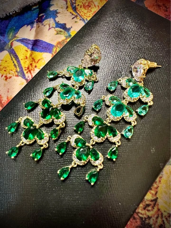 Turn heads at your next special event with this stunning pair of emerald green crystal chandelier earrings. Made with high-quality, faceted emerald-toned crystals, these earrings are a masterpiece of sparkle and sophistication. Their cascading design is carefully crafted to elongate the neck and highlight your natural facial contours, giving an instant lift to any evening look. The vibrant emerald crystals aren’t just visually captivating – they are also known in crystal healing to promote emotional balance, love, and positive energy. Set in a golden base and finished with 925 sterling silver posts, these earrings are hypoallergenic and gentle on sensitive ears. Perfect for: • Parties and galas • Evening gowns and formal dresses • Weddings, anniversaries, and special celebrations Brand new, never worn. Unique design you won’t find anywhere else – make them yours before they’re gone!