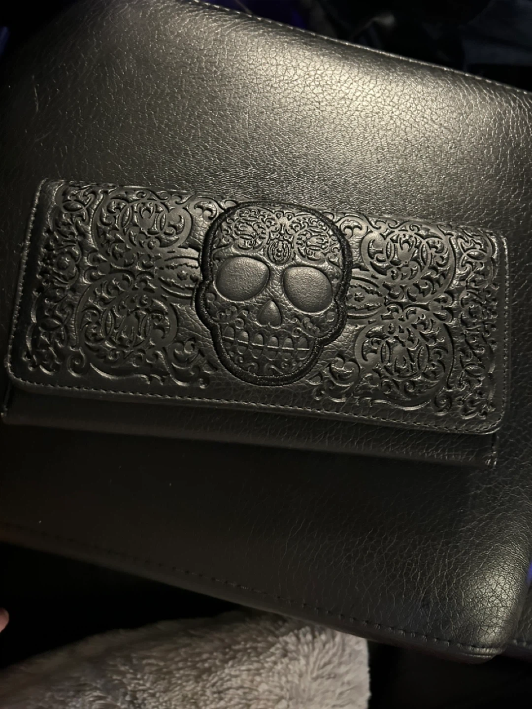 Selling a Loungefly wallet in black with a skull design. It's in great condition and has lots of slots for cards and cash. Perfect for adding a bit of edge to your everyday!