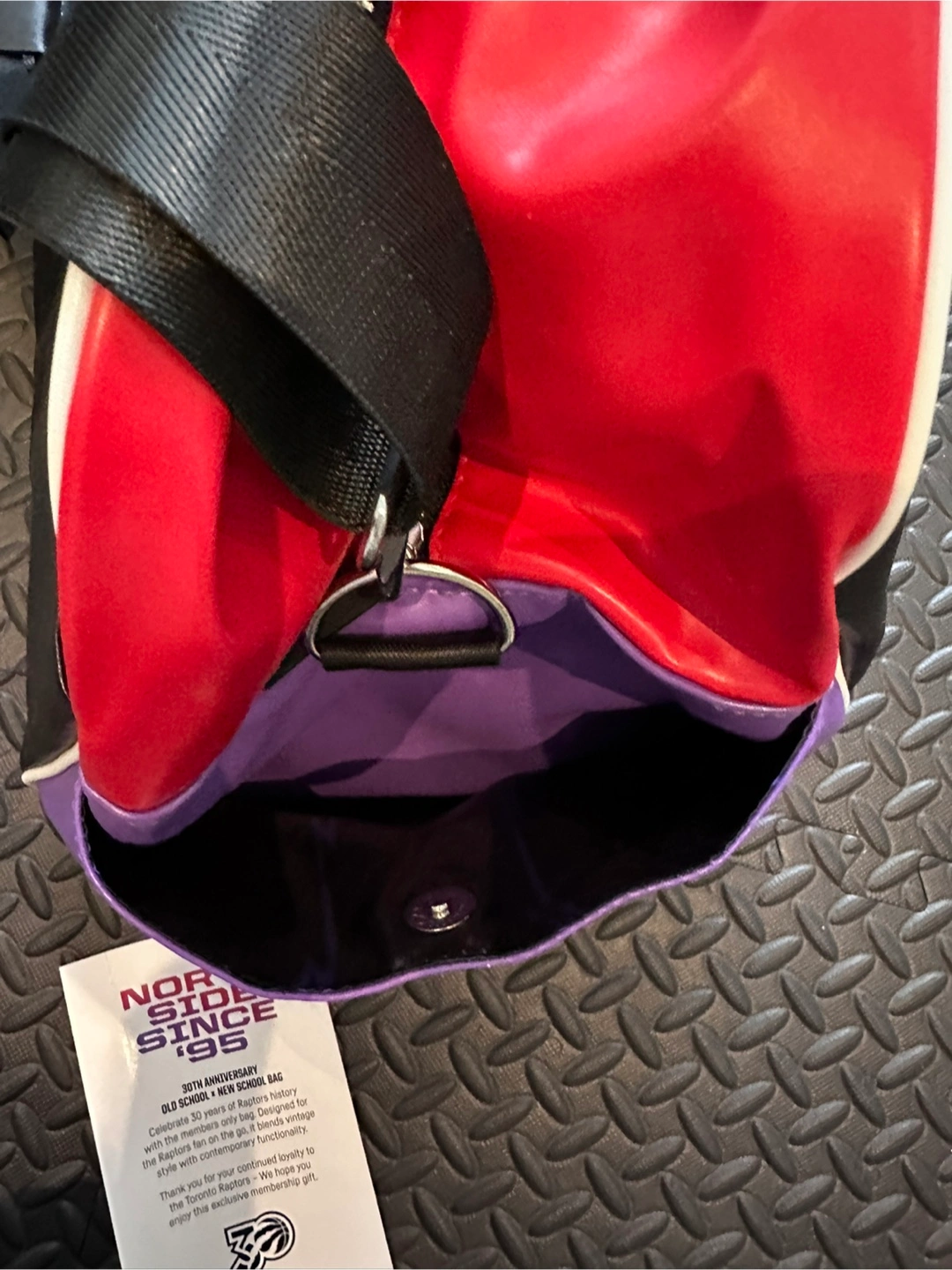 Selling a brand new Toronto Raptors 30th Anniversary old school x new school duffle bag. This a members only bag designed for Raptors fan on the go, it blends vintage style with contemporary functionality. We The North! Size: L 55 cm x W 30 cm x H 31 cm.