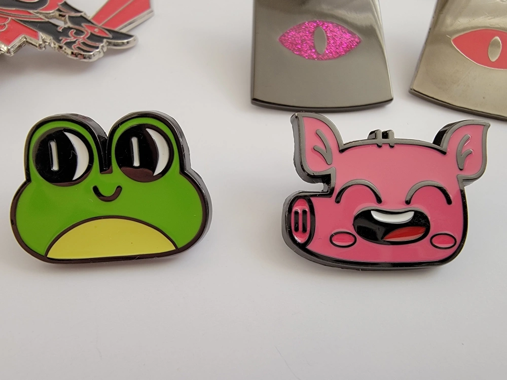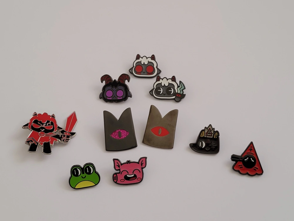 Selling a collection of enamel pins with various designs! They're in great condition and would look great on a backpack, jacket, or pin board. Check out the photos to see all the different styles! The theme for all the pins is Cult of the Lamb. The original merch can be found here (except for the first pin because it came with a kickstarter campaign): * Frog Follower: https://merch.devolverdigital.com/collections/10-30/products/cult-of-the-lamb-frog-enamel-pin * Pig Follower: https://merch.devolverdigital.com/collections/10-30/products/cult-of-the-lamb-pig-enamel-pin * Ratau: https://merch.devolverdigital.com/products/cult-of-the-lamb-ratau-enamel-pin * Clauneck: https://merch.devolverdigital.com/products/cult-of-the-lamb-clauneck-enamel-pin * Purple Crown: https://merch.devolverdigital.com/collections/10-30/products/cult-of-the-lamb-purple-crown-enamel-pin * Red Crown: https://merch.devolverdigital.com/collections/cult-of-the-lamb/products/cult-of-the-lamb-eye-enamel-pin * Possessed Goat: https://merch.devolverdigital.com/products/cult-of-the-lamb-possessed-goat-enamel-pin * Lamb: https://merch.devolverdigital.com/collections/10-30/products/cult-of-the-lamb-lamb-knife-enamel-pin * Possessed Lamb: https://merch.devolverdigital.com/products/cult-of-the-lamb-possessed-lamb-enamel-pin For more merch of Cult of the Lamb on the Devolver Digital website, check this website out: https://merch.devolverdigital.com/collections/cult-of-the-lamb Open to negotiating the price; please reach out. Thank you for taking a look at my listing! Have a wonderful day.