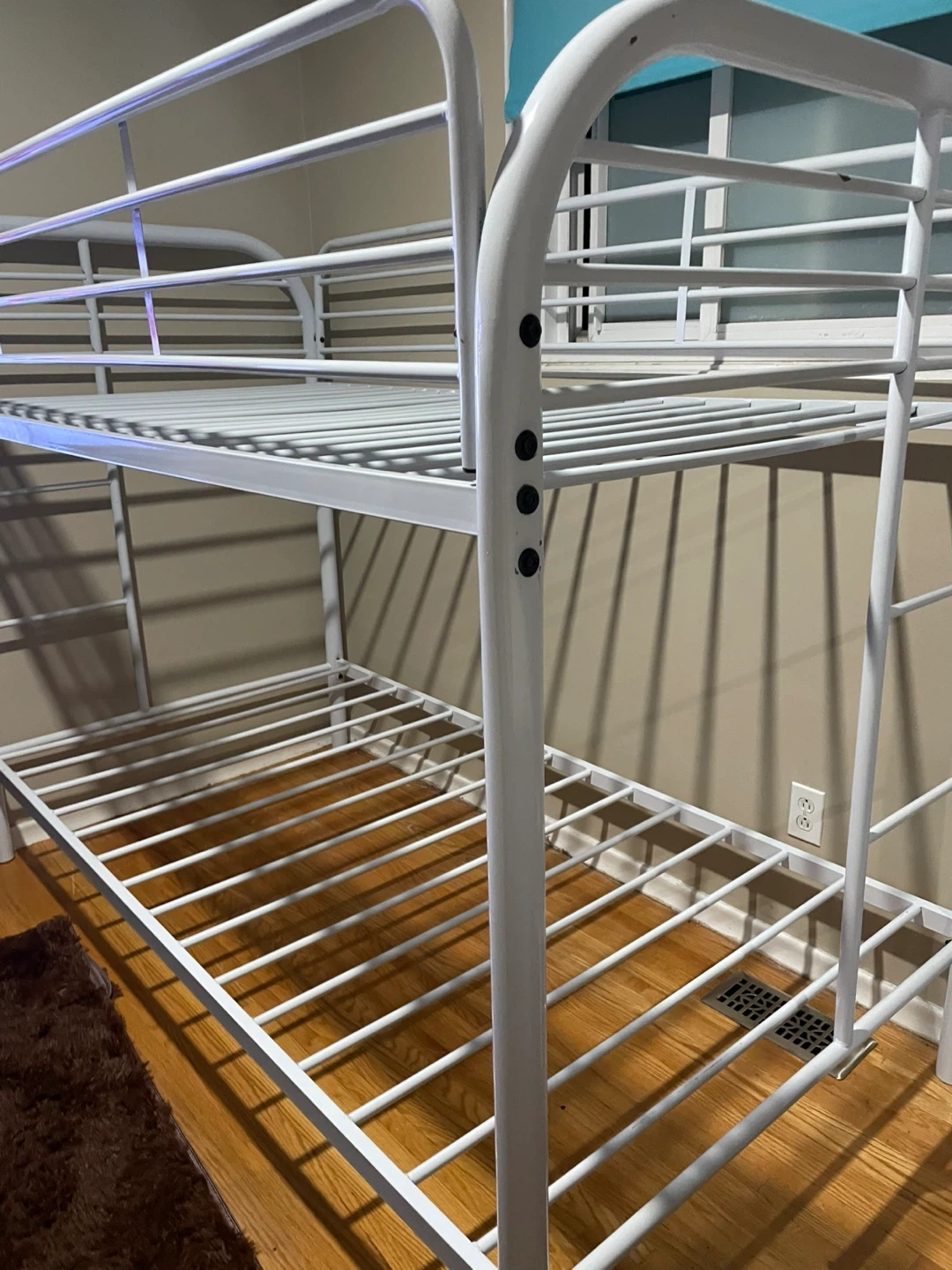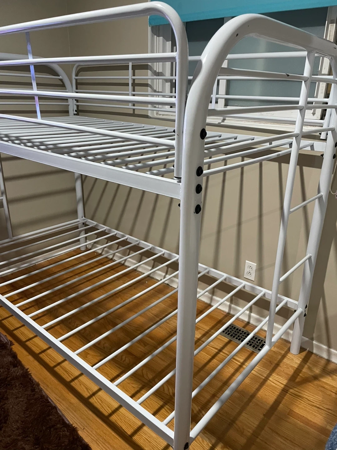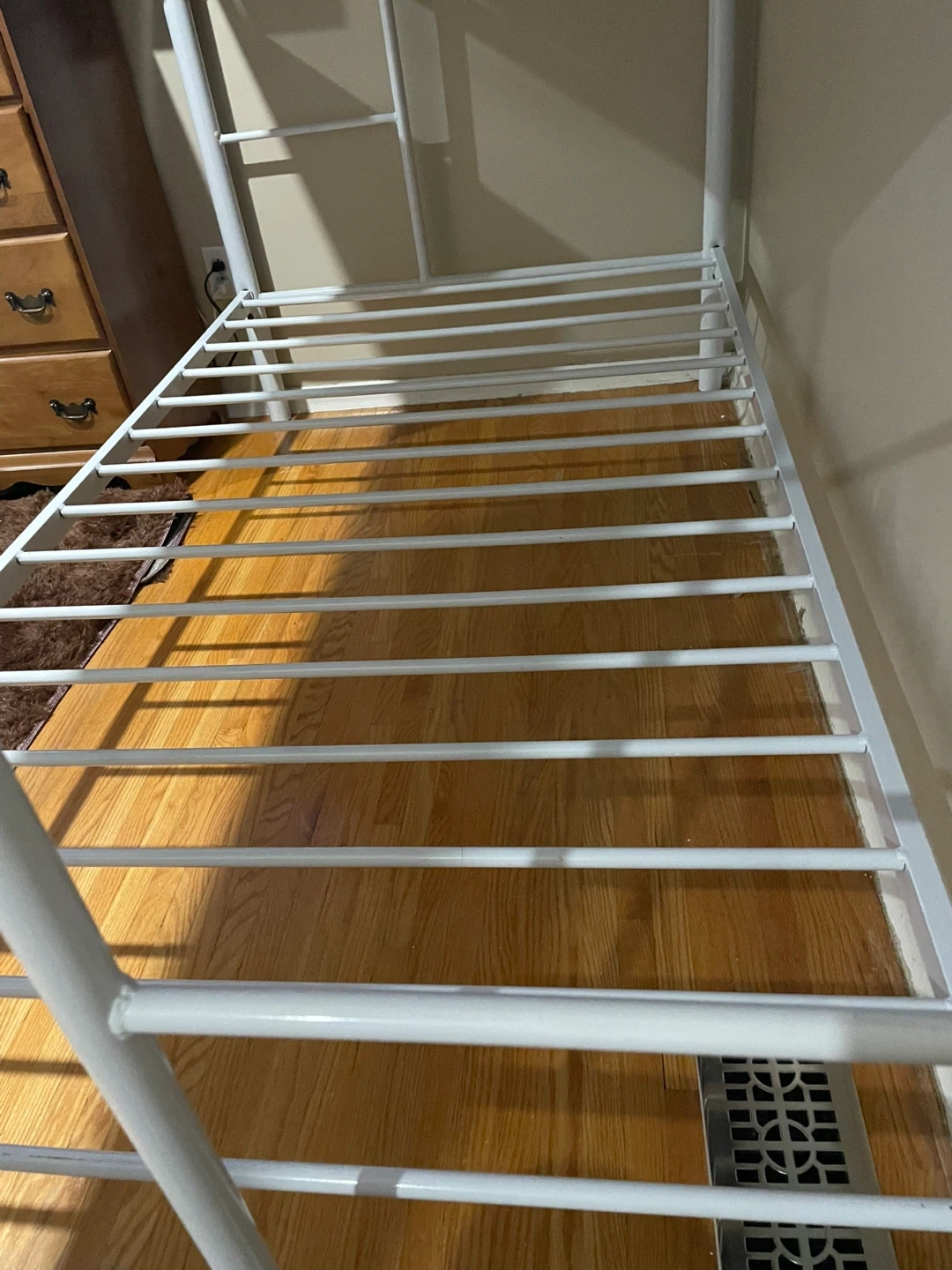 Selling a sturdy white metal bunk bed frame. It's in great shape and ready for a new home. Perfect for kids' rooms or guest rooms where you need to maximize space. It's a simple, clean design that fits with any decor