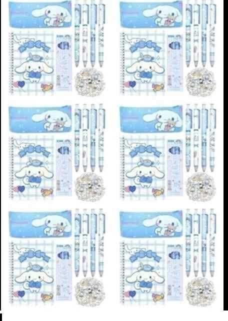 MEKZU Cute Cinnamoroll - Pencil Case, Gel Pens, Journal Notebook, 50 Stickers, Kawaii Stationery Set, Blue S06-15