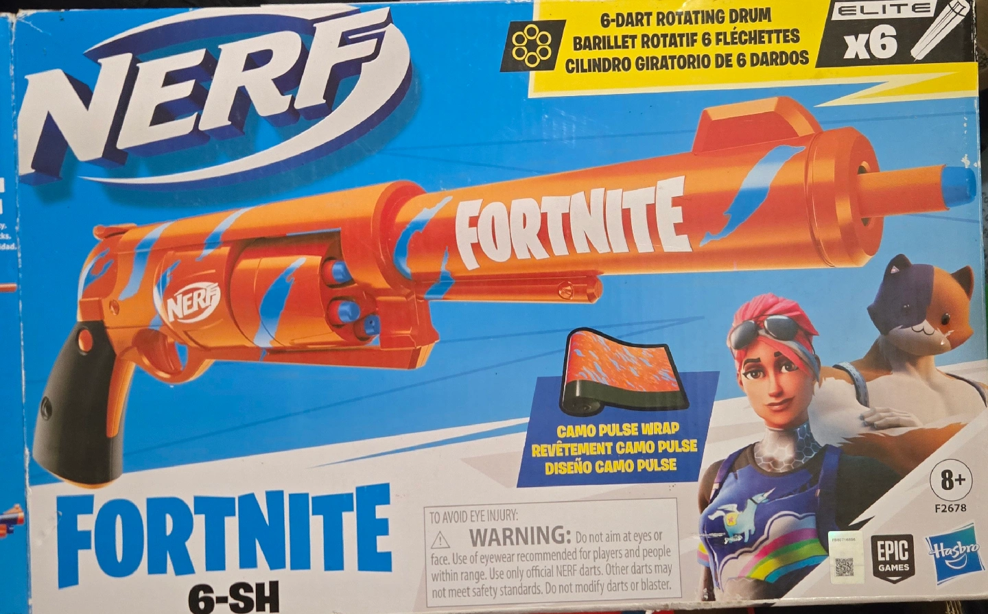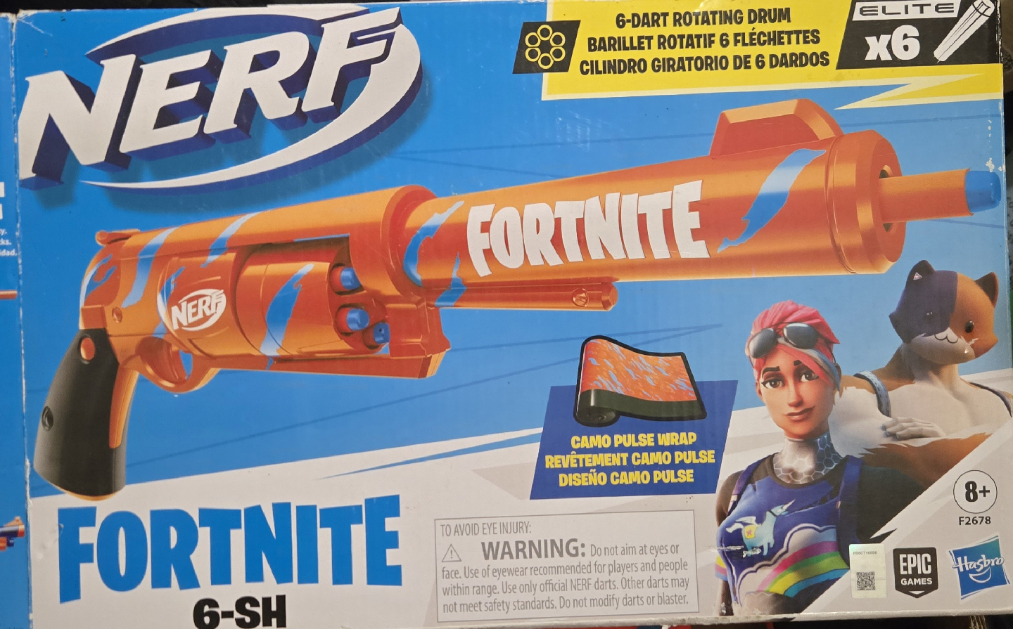Selling a like-new Nerf Fortnite 6-SH blaster! It features a 6-dart rotating.