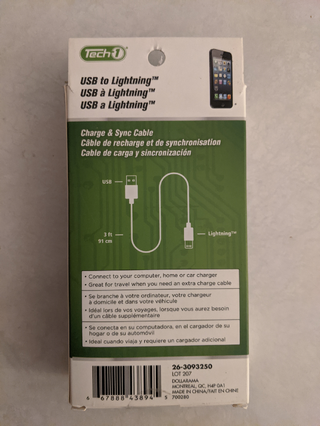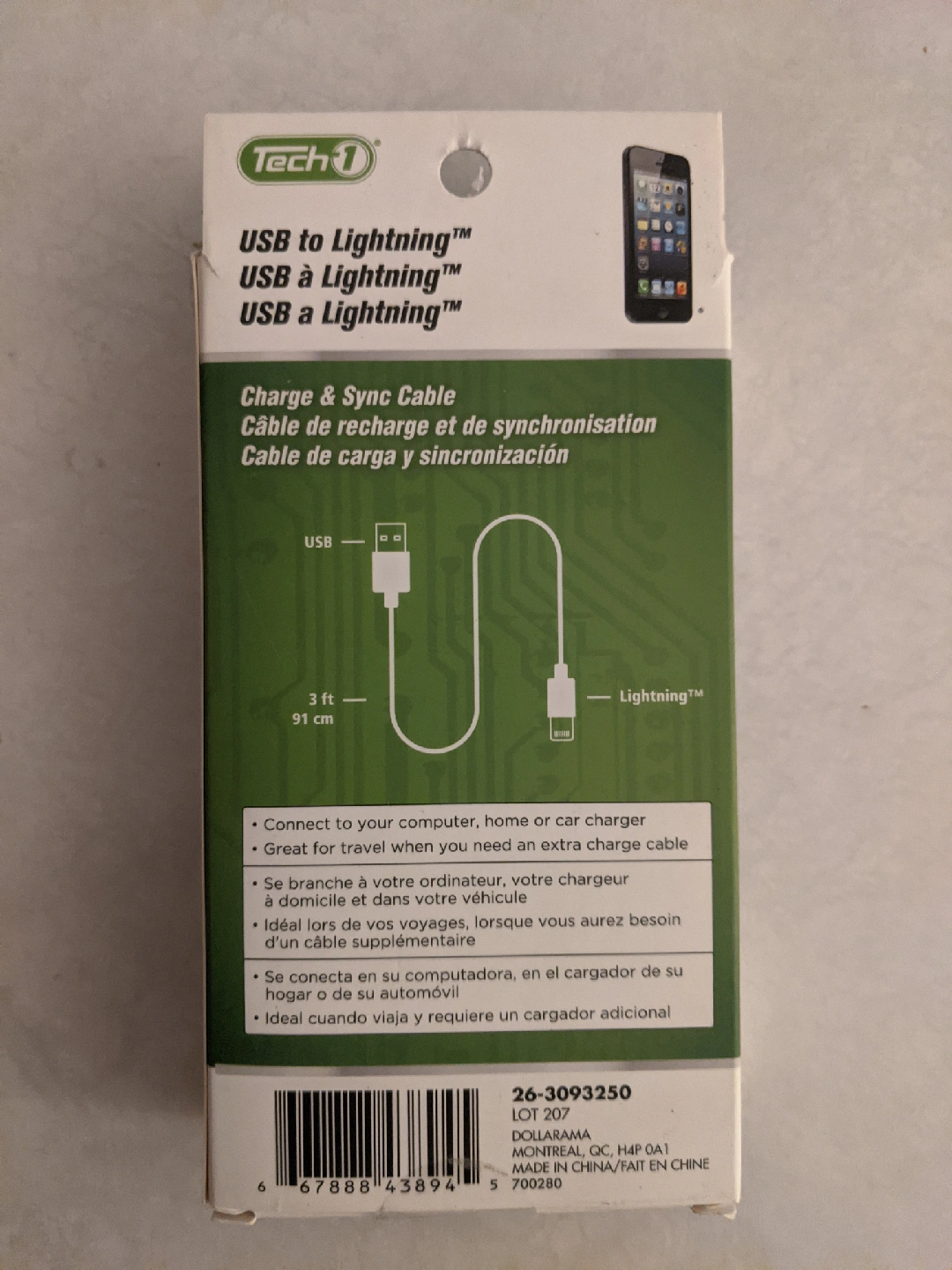 Selling a Tech1 USB to Lightning charge and sync cable. It's 3 ft long (91 cm). It's great for travel when you need an extra charge cable! Connects to your computer, home, or car charger