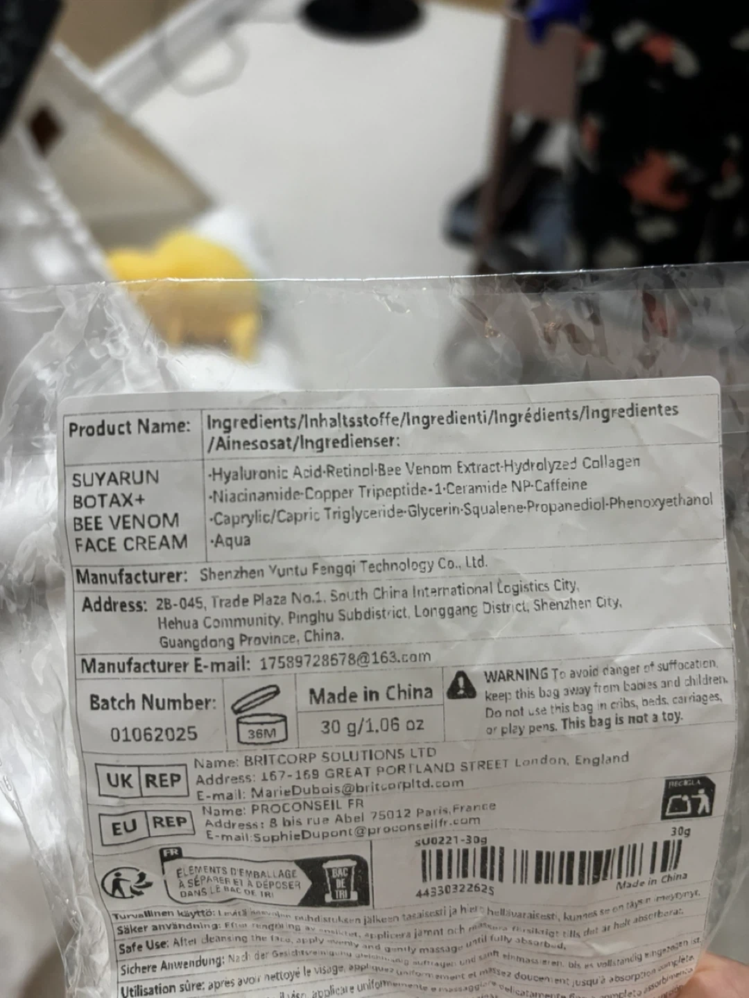 95Selling a Suyarun Botax+ Bee Venom Face Cream! This cream features ingredients like Hyaluronic Acid, Retinol Bee Venom Extract, and Hydrolyzed Collagen. It comes in a 30 g / 1.06 oz container. I bought this new but never used it!