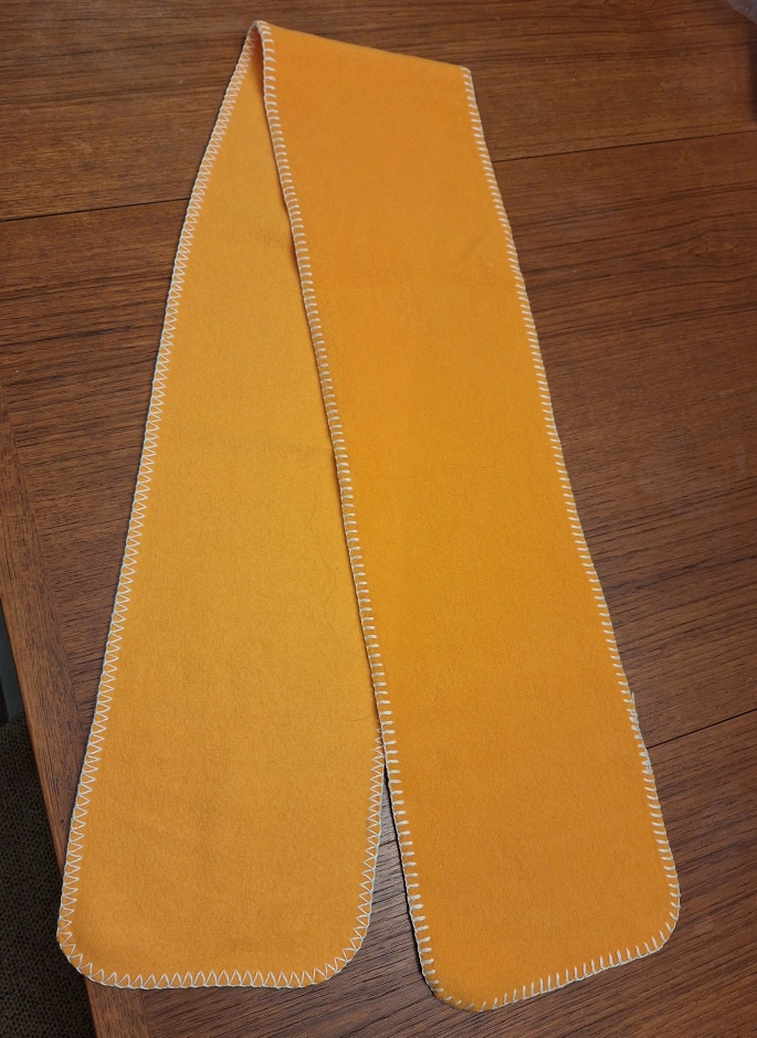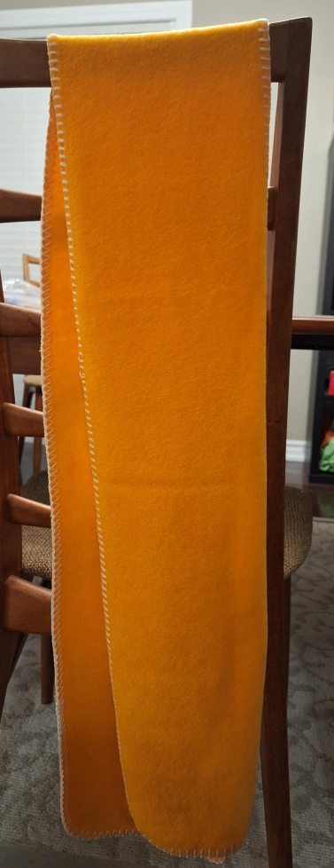 Selling a cozy orange scarf! It's in great condition and ready to keep you warm. The material feels soft and comfortable, perfect for chilly days
