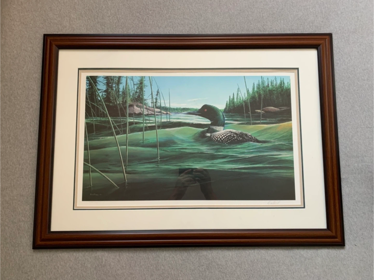 Limited number. Edition 632 of 780. In the year 1986. Beautifully framed in perfect condition. Would be well appointed in a cottage, den or office. Total size approximately 36” X 26”
