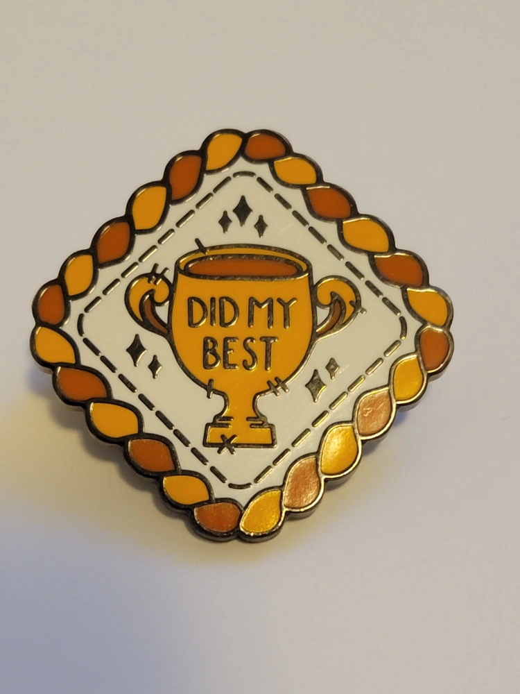 This is a cute enamel pin from Mia Mouz. It's shaped like a trophy and says "Did My Best" on it. Great for adding a bit of fun to your jacket or bag!