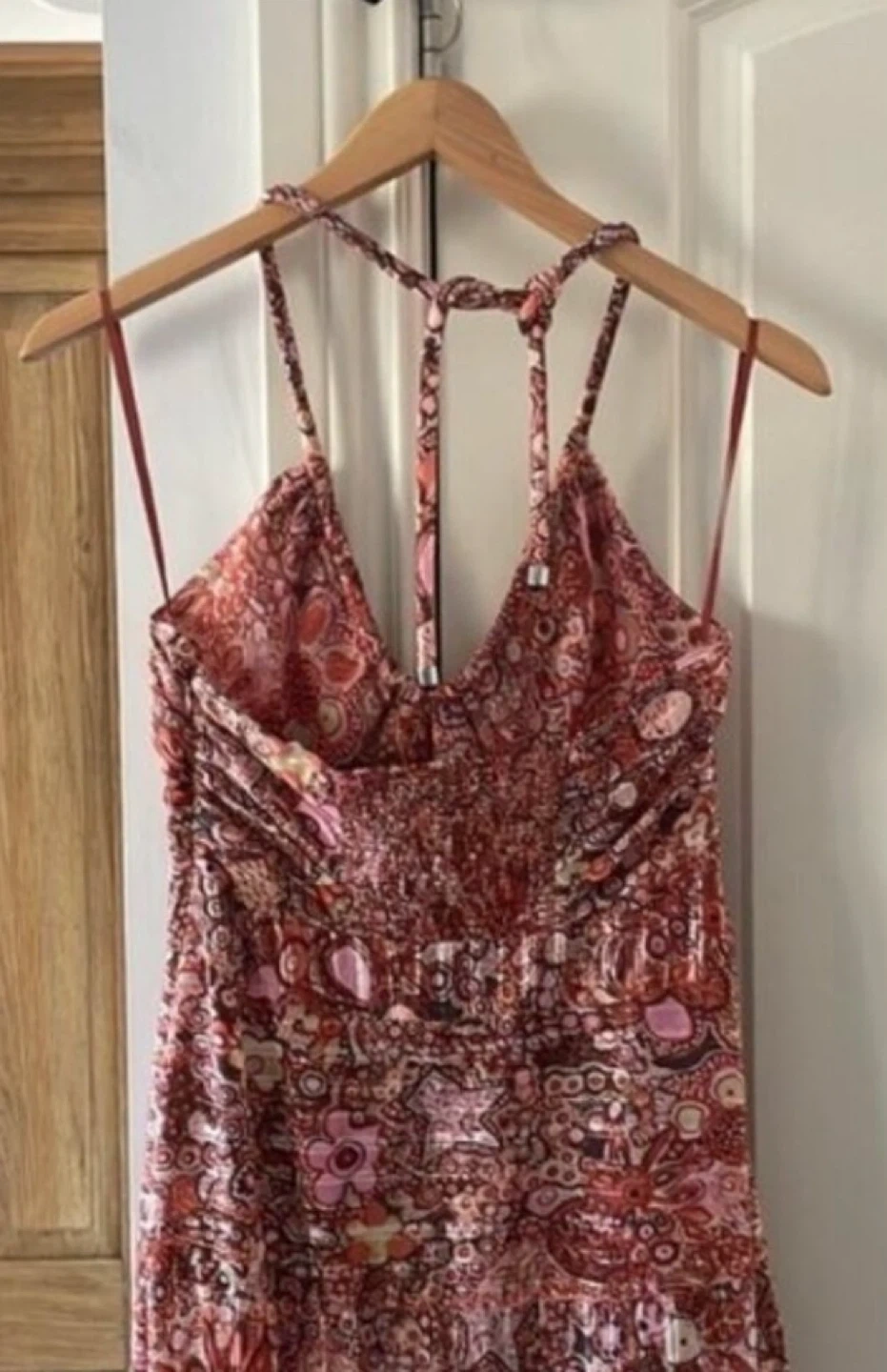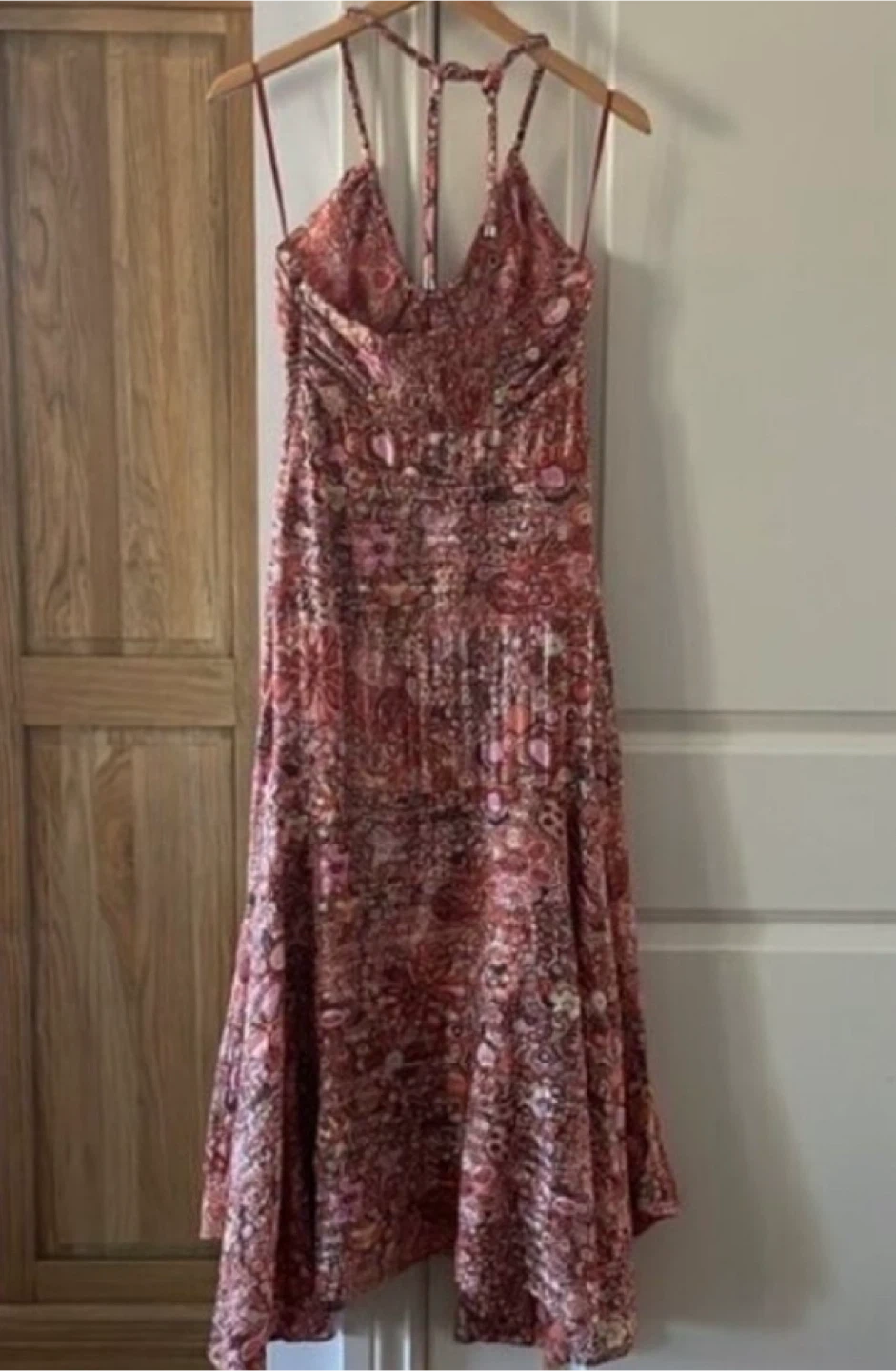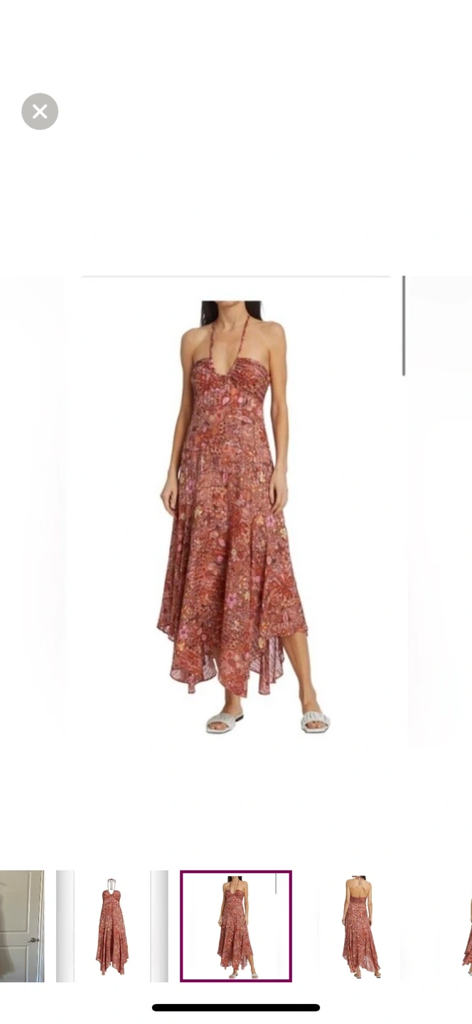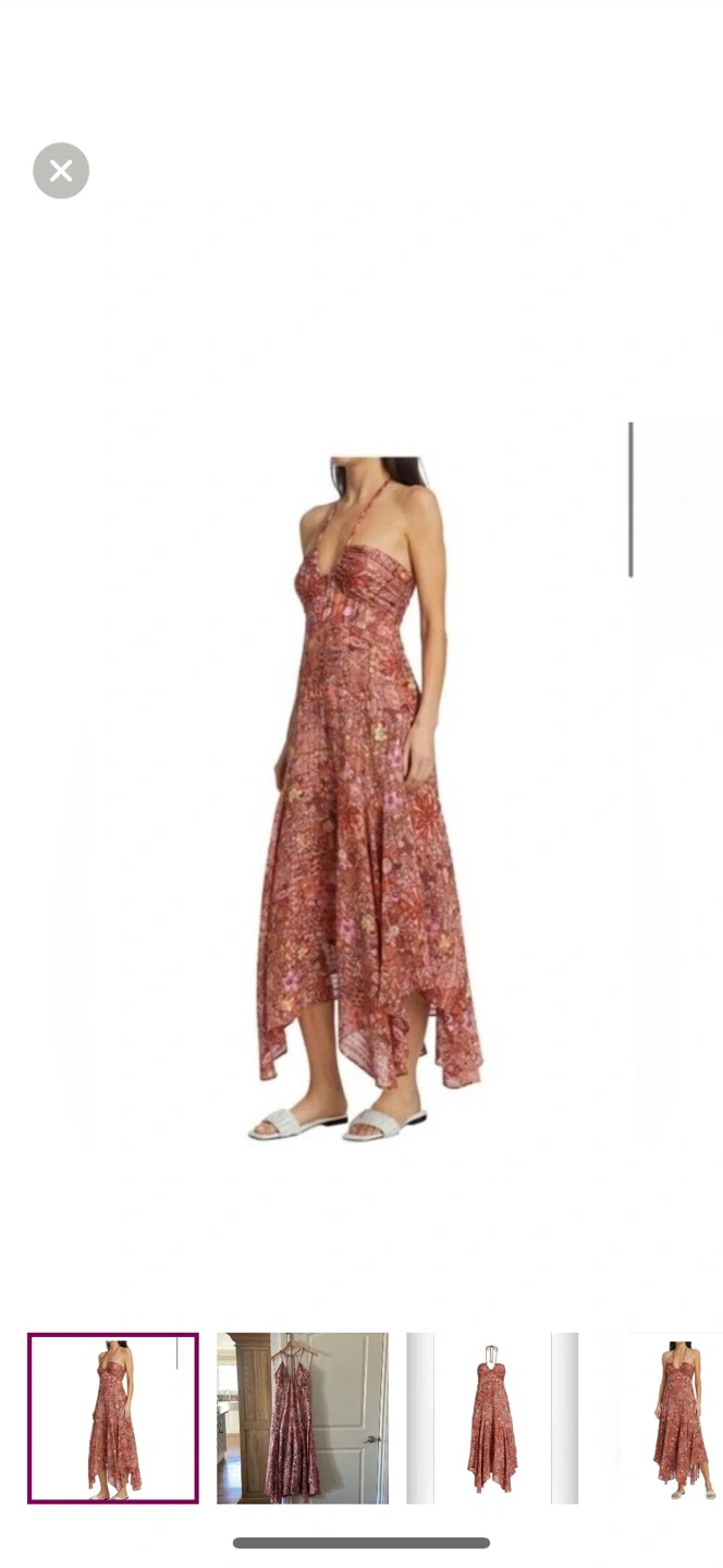 A.L.C. maxi dress features a beautiful floral print and a halter neckline. Perfect for summer days or special occasions! It is in pristine condition and ready for a new home.
