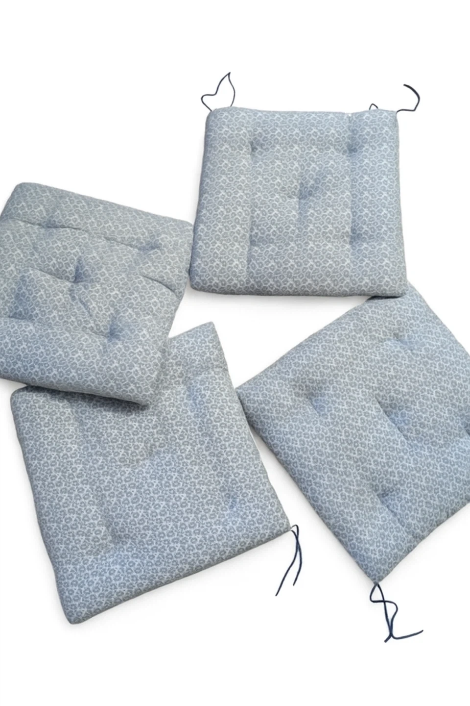 Set of four chair cushions in pale blue and white floral pattern. Very gently used indoors for a short period of time — in excellent condition. No rips or tears. Each cushion has ties and measures approximately: 20” x 20” Pick up from a smoke free home near Browns Line & Lakeshore Boulevard in Etobicoke (Toronto/Mississauga).