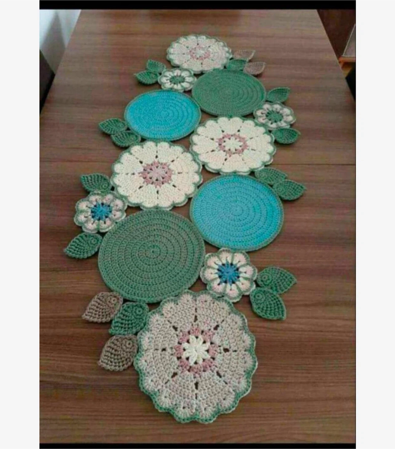 Selling a beautiful, handmade crochet table runner. It's in great condition and would add a lovely touch to any table. The colours are a mix of greens, blues, and creams in a floral pattern. Perfect for adding a cozy, homemade feel to your home!