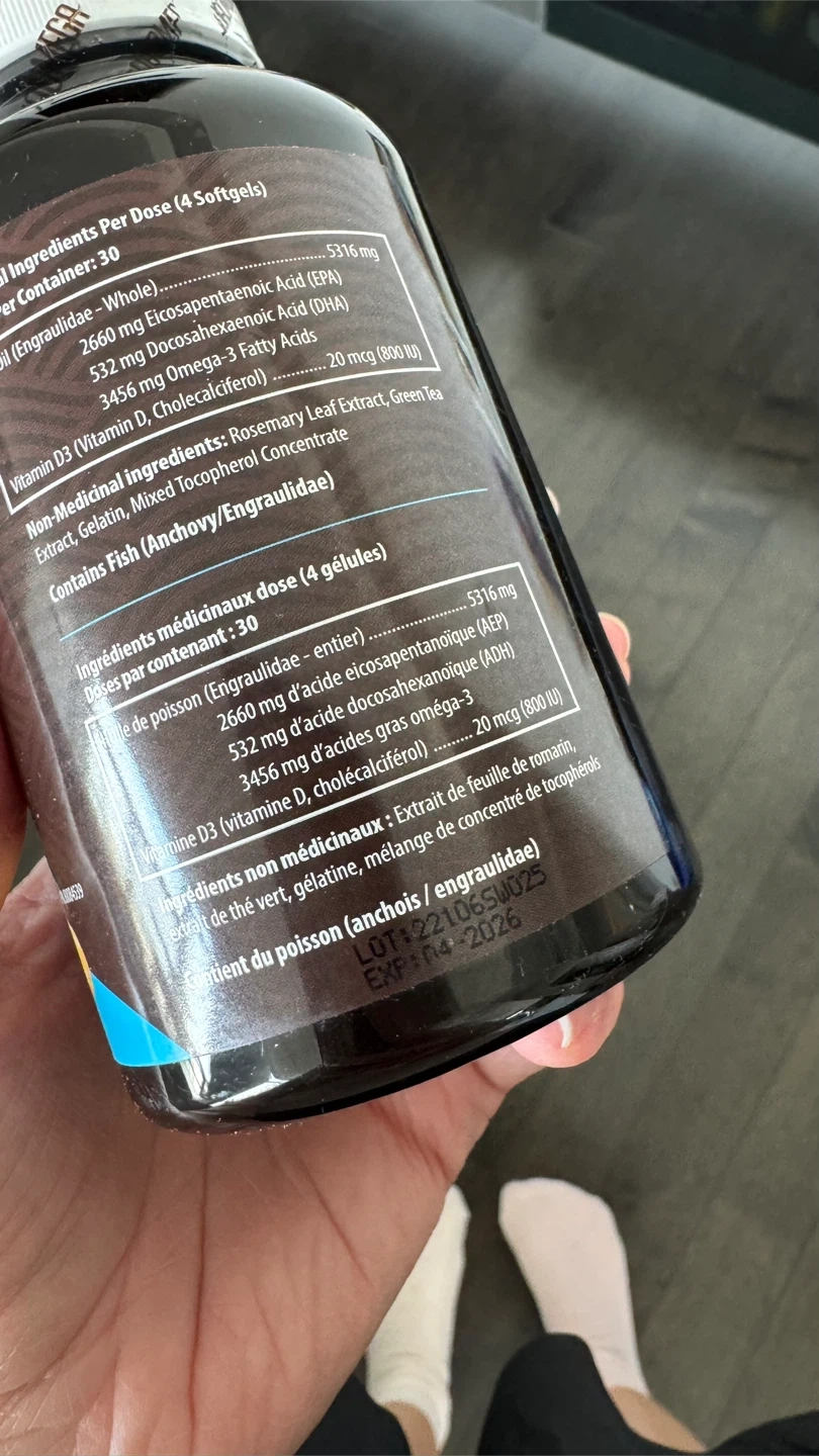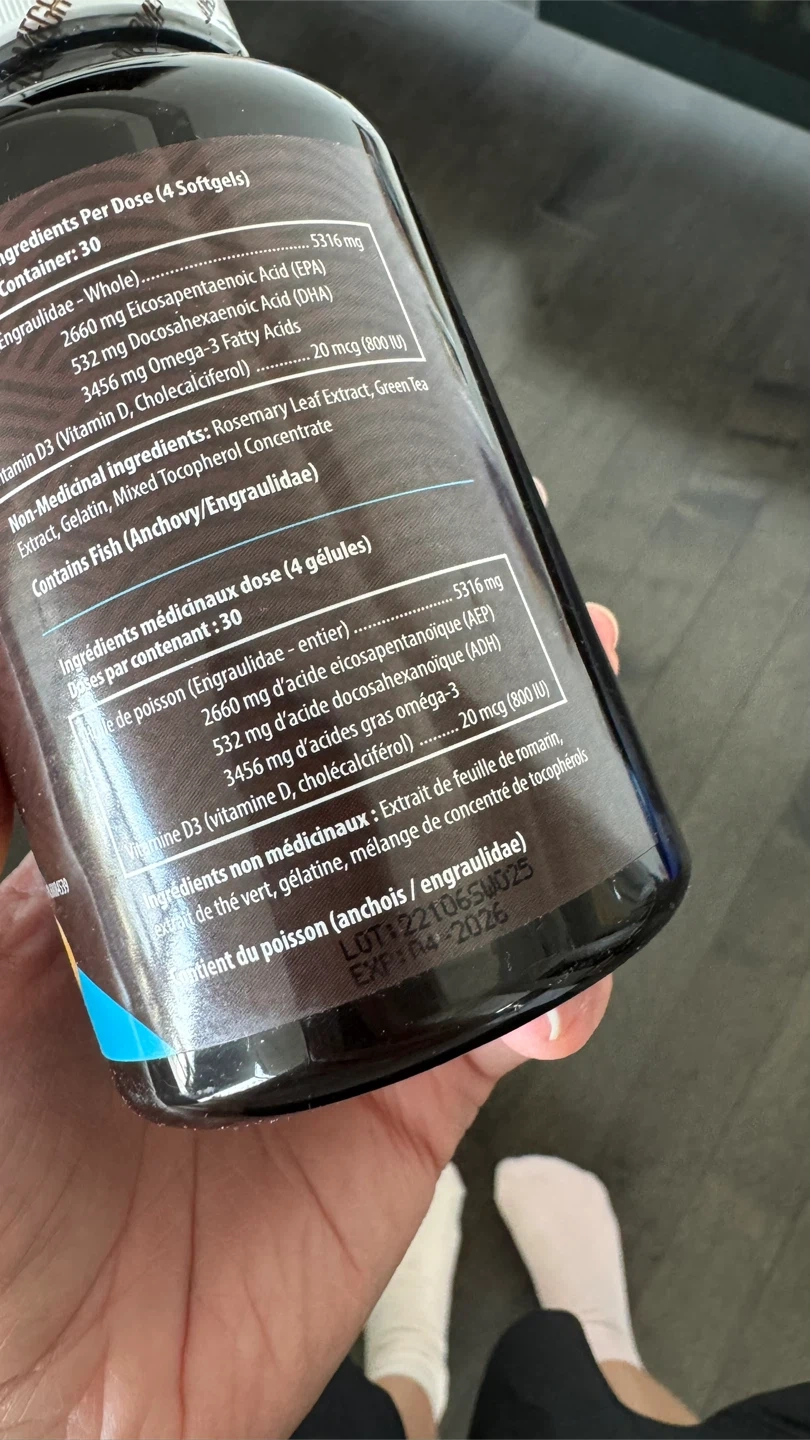 Selling a brand new bottle of AquaOmega Omega-3 Wild Caught Fish Oil! It contains 3450mg of Omega-3 per daily dose and 120 softgels in total. Expiry date is April 2026