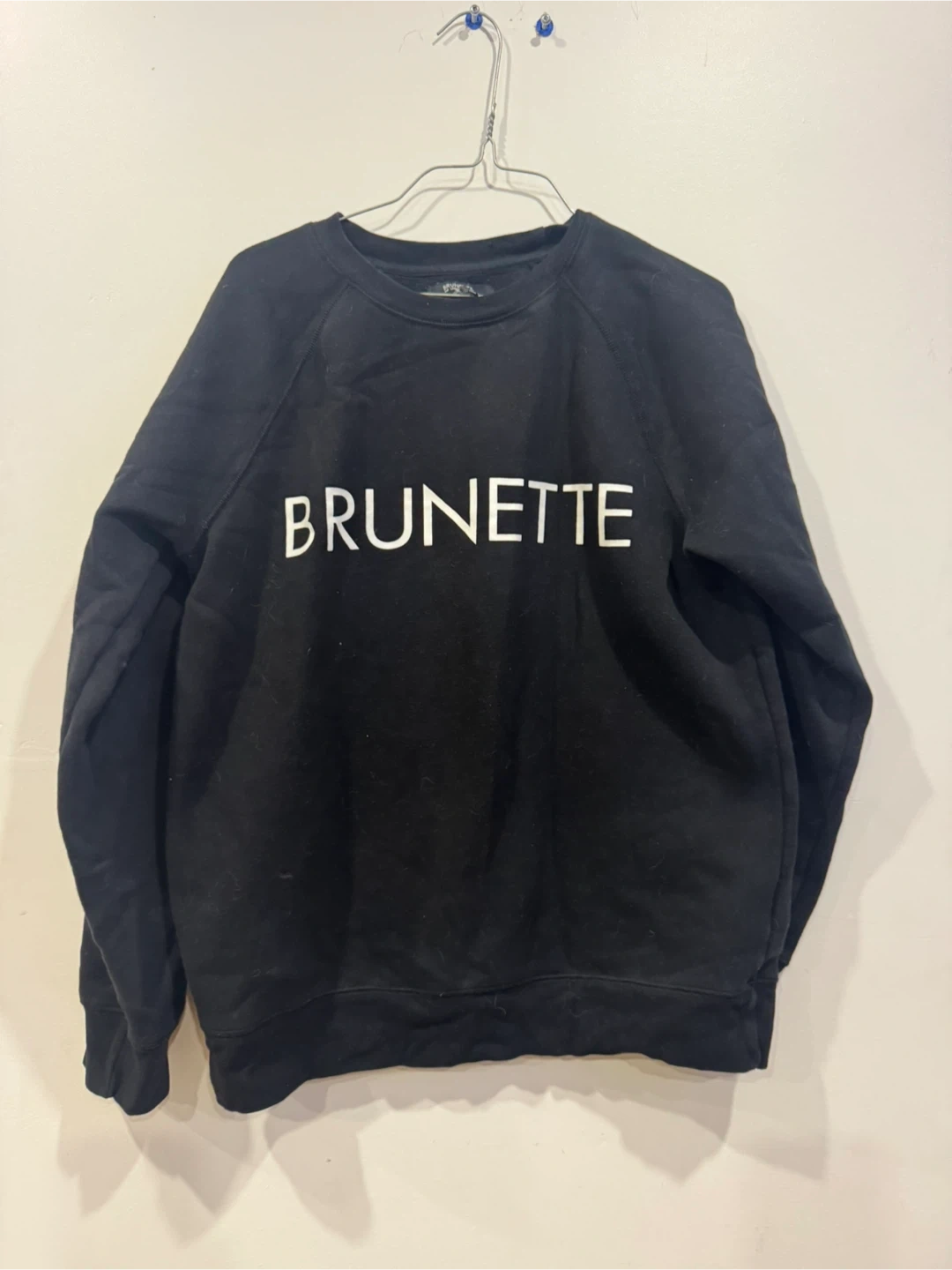 55Cozy black crewneck sweater from Brunette the Label! It's in great condition and features the brand's name in white lettering across the chest