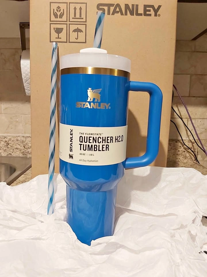 Selling this Brand new with box Limited Edition authentic Stanley H2.0 Flowstate 40oz Quencher/ Tumbler. ( This Arctic Twist Exclusive was released in early 2024 and sold out online within minutes ) * Extra straw included * Asking: $60.00 Pickup available in Etobicoke near The West Mall and Rathburn area. Thank you for viewing the listing.