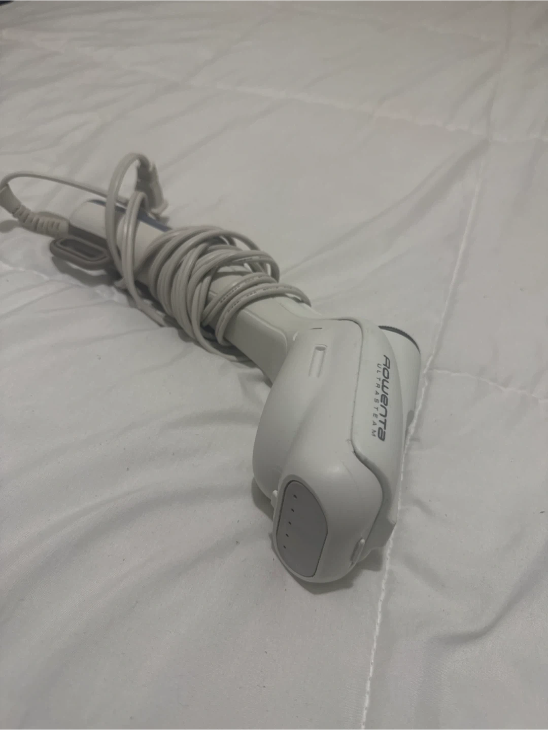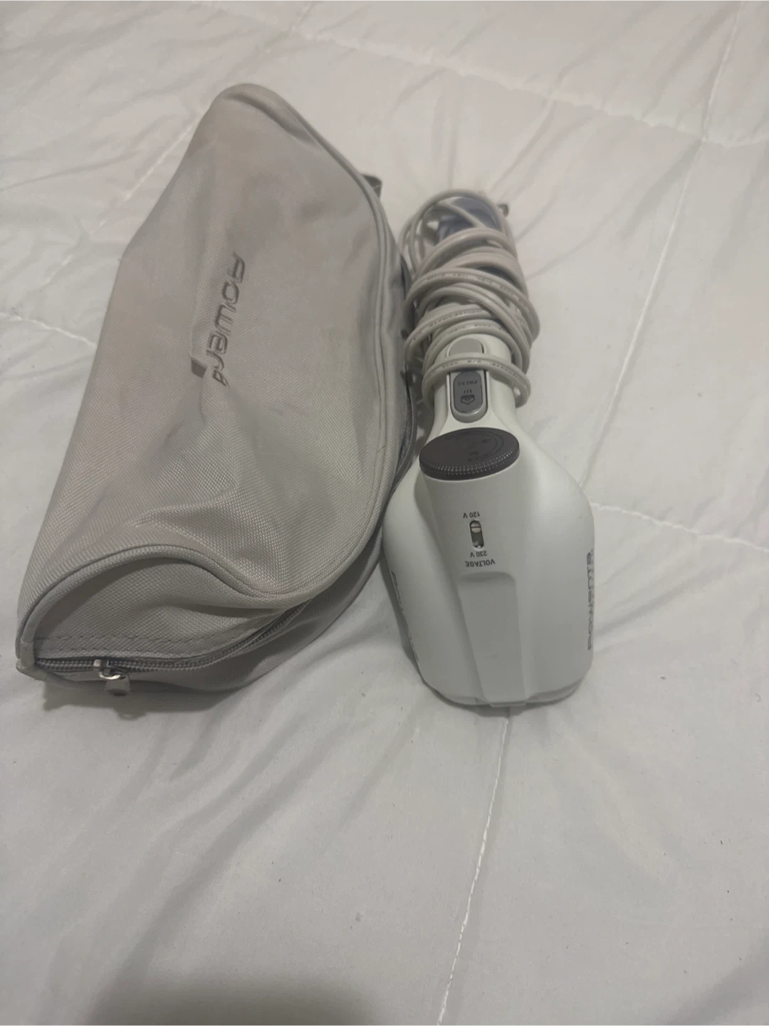 Selling a Rowenta Ultrasteam handheld garment steamer. It's in great condition and comes with its original carrying bag. Perfect for quick touch-ups and travel! It's lightweight and portable for easy use.