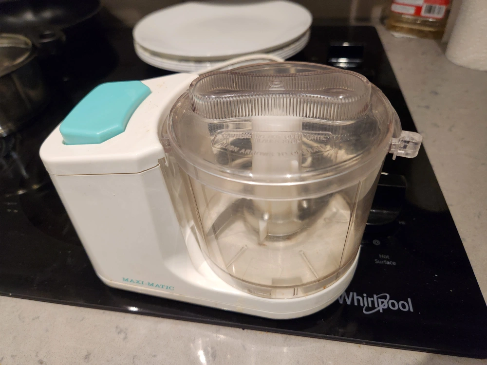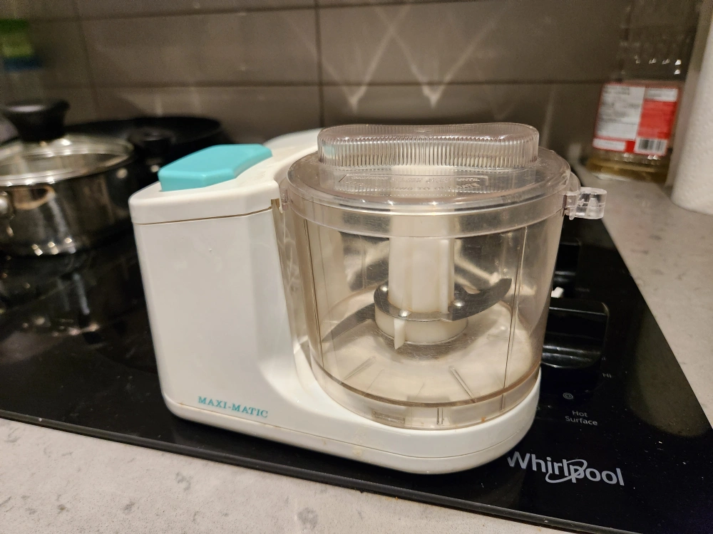 Selling a Maxi-Matic mini food processor! It's perfect for small chopping tasks in the kitchen. Great for prepping ingredients quickly and easily. It's in good condition and ready for a new home! It's also good for making mango smoothie with frozen mango and a bit of milk and yogurt!
