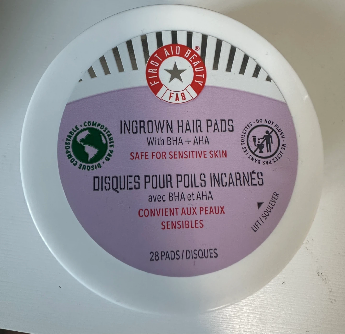 Brand new sealed. Selling a container of First Aid Beauty Ingrown Hair Pads. These pads contain BHA + AHA and are safe for sensitive skin. There are 28 pads in the container. Perfect for preventing ingrown hairs!