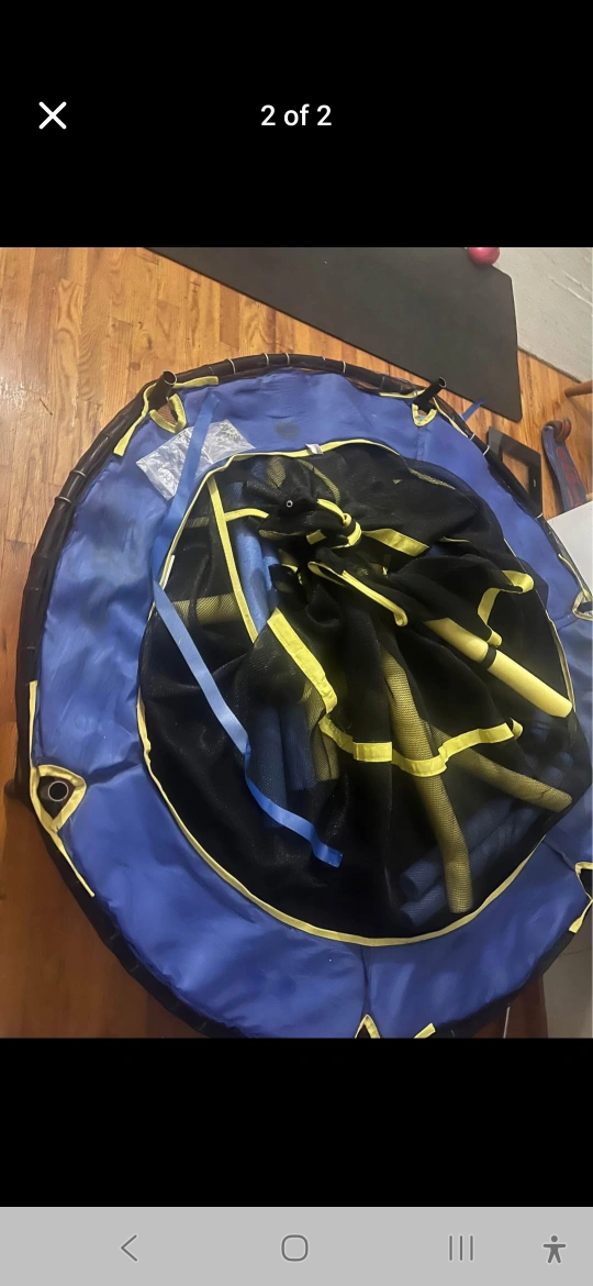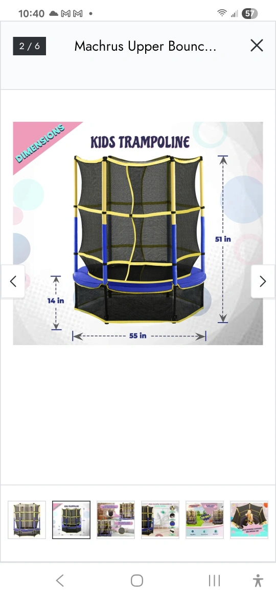 Selling a Machrus Upper Bounce 55-inch kids trampoline in used condition! It's perfect for indoor or outdoor fun. The dimensions are 51 inches in height and 55 inches in diameter, making it a great size for kids to bounce around safely.